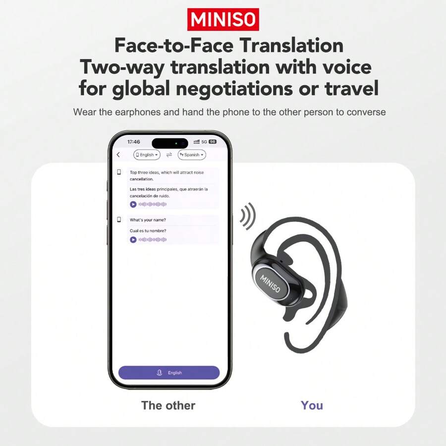 Sprachbarrieren? Vergiss sie! Diese MINISO Übersetzungskopfhörer verstehen 134 Sprachen in Echtzeit. Einfach App runterladen und loslegen - kein Abo nötig. Mit LCD-Touchscreen für einfache Bedienung. Nicht nur zum Übersetzen - auch für Musik, Anrufe und Filme super geeignet. Bis zu 8 Stunden Akkulaufzeit, in 1,5 Stunden voll geladen. Das offene Ohr-Design ist super bequem - du hörst trotzdem deine Umgebung. Perfekt für Reisen, Geschäftstermine oder zum Lernen. Die Welt verstehen war noch nie so einfach!