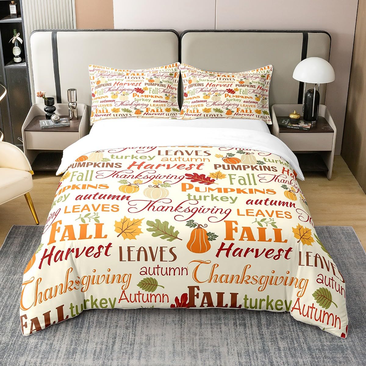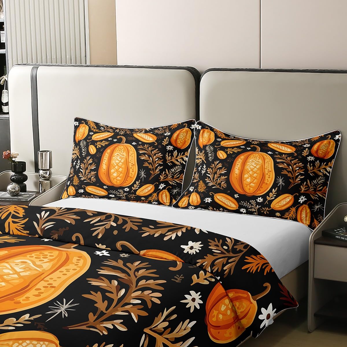 Homewish Herbst Bettwäsche 135x200cm - Kürbis Design Baumwolle Bettbezug Set