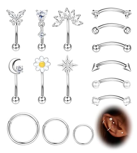 Boah, was für ein umfangreiches Piercing-Set! Mit einer Bestellung bekommst du gleich 14 verschiedene Rook Piercings in Gold und Silber - da ist für jeden Style was dabei. Aus hochwertigem Edelstahl gefertigt, der nickel- und bleifrei ist. Mit 1.2mm Stärke (16G) und verschiedenen Größen perfekt für die meisten Piercing-Arten. Ob für Daith, Conch, Septum oder Augenbrauen - diese Piercings passen einfach überall. Sie sehen klasse aus und sind dabei super langlebig. Perfekt als Geschenk für Geburtstage, Weihnachten oder einfach mal so. Und falls mal was nicht passt: Der Kundenservice kümmert sich innerhalb von 24 Stunden. Einfach aussuchen, einsetzen und bewundern lassen!