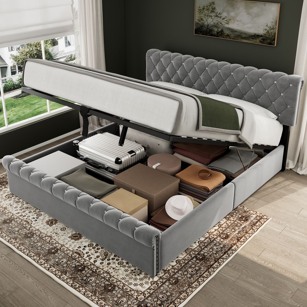 • Home Collective Polsterbett 140x200 - Stauraumbett Mit Hydraulischem Bettkasten & Höhenverstellbarem Kopfteil