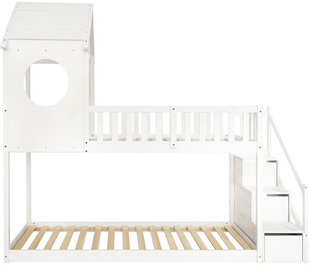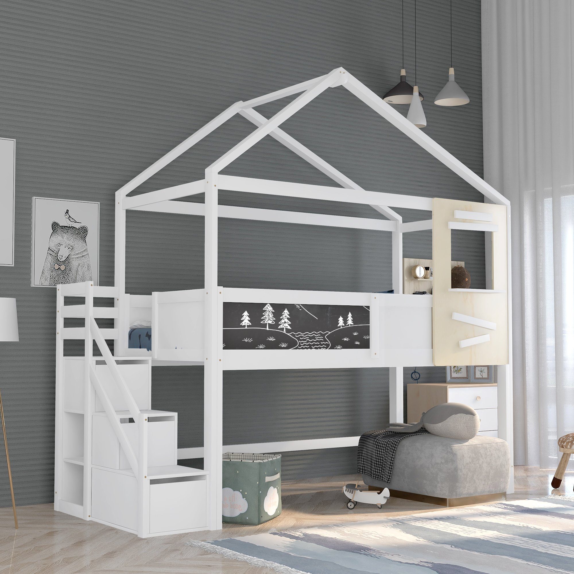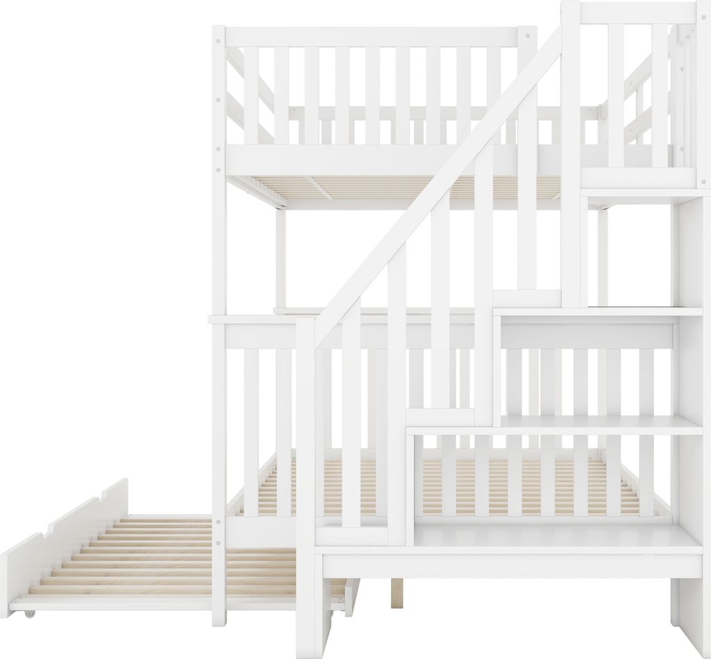 Traumhaftes Hochbett fürs Kinderzimmer! Das HYUB Bett in 140x200cm ist aus stabilem Kiefernholz und MDF - da klettert und tobt dein Kind sicher rum. Die breite Treppe mit integrierten Regalfächern ist genial: Da passt Spielzeug, Bücher oder Kleidung rein und alles ist griffbereit. Oben gibt's hohe Sicherheitsgeländer - da rollt nachts keiner raus! Unten ist eine gemütliche Sitzecke zum Spielen, Lesen oder Quatschen mit Freunden. Die süßen Sternen- und Mond-Ausschnitte machen das Bett zum echten Hingucker. Montage? Ist nötig, aber mit der Anleitung machbar - das Bett kommt in 3 Paketen, die vielleicht an verschiedenen Tagen ankommen (voll normal!). Tragkraft bis 150kg - da können auch mal Erwachsene mit drauf. Matratze bis 12cm Dicke passt perfekt. Mit 171cm Höhe passt es auch in normale Zimmer. Dein Kind wird sein neues Reich lieben - und du freust dich über den praktischen Stauraum und dass alles seinen Platz hat. Ein Bett, das mitwächst und lange Freude macht!