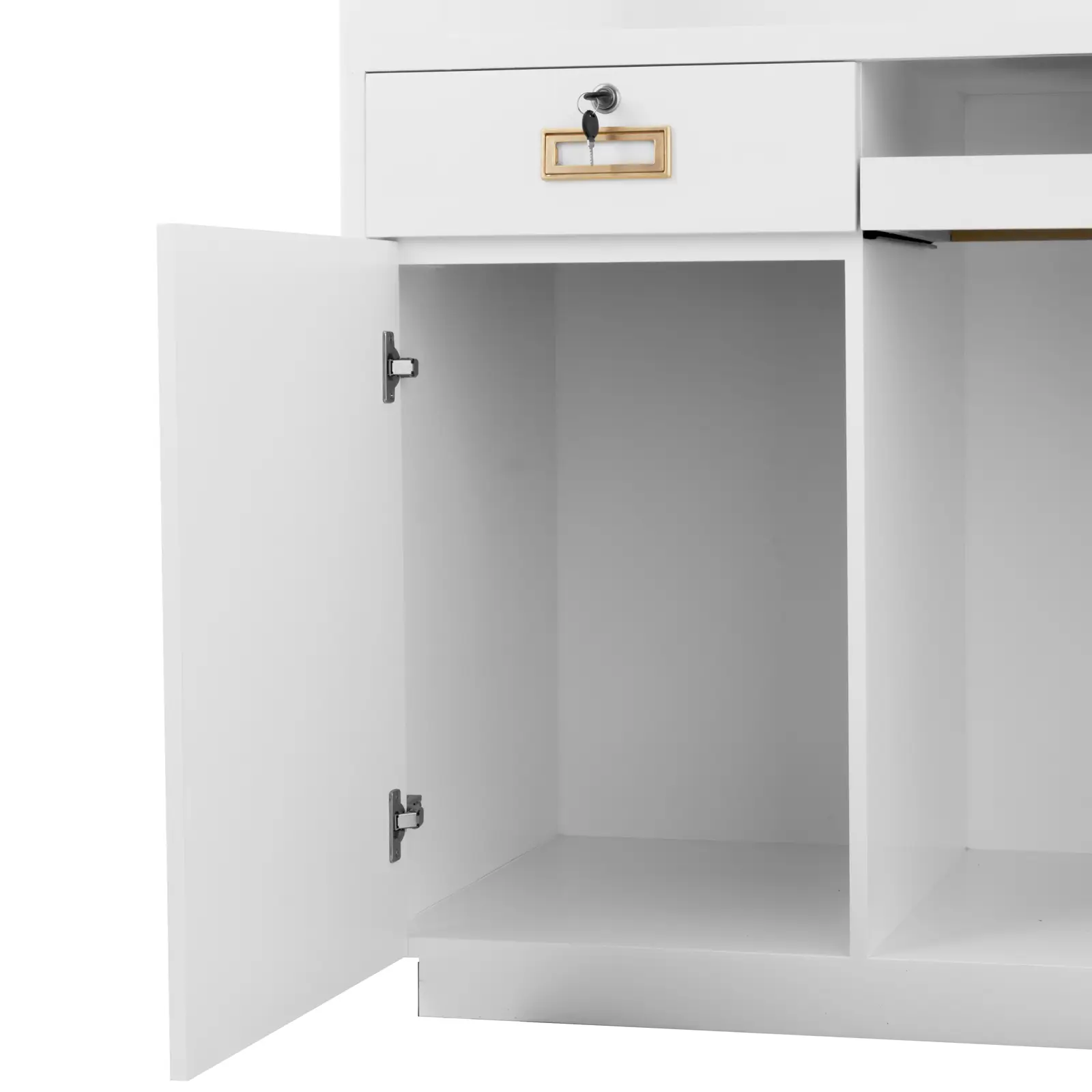 Professioneller Auftritt garantiert! Diese stylische Empfangstheke in Weiß mit den Maßen 140x60x100cm macht in jedem Büro, Hotel oder Salon eine gute Figur. Aus robustem Holzwerkstoff gefertigt, bietet sie reichlich Platz für Computer, Telefon und Arbeitsmaterial. Besonders praktisch: Die abschließbare Schublade für wichtige Dokumente und die ausziehbare Tastaturablage für mehr Ordnung. Mit integrierter LED-Beleuchtung für eine einladende Atmosphäre. Die Metallschienen sorgen für sanftes Öffnen und Schließen. Perfekt für Rezeptionen, Praxen oder Verkaufsräume. Einrichtung leicht gemacht - dieser Tresen bringt sofort professionelles Flair in deine Räumlichkeiten!