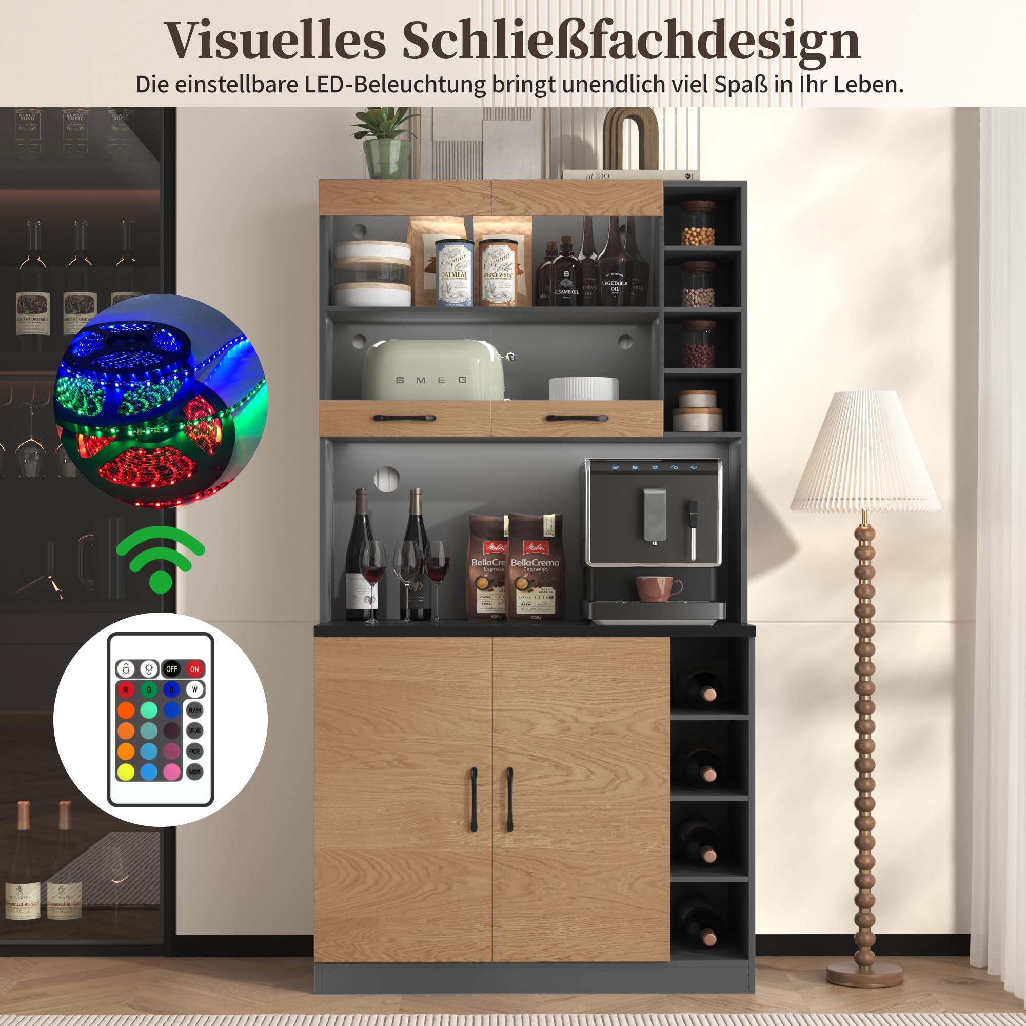 Wow, dieser Oslghy Küchenhochschrank ist echt ein Allrounder für deine Küche oder Esszimmer! Mit den Maßen 145x39x171 cm bietet er super viel Stauraum und sieht dabei noch mega stylisch aus. Die modernen vertikal strukturierten Glastüren sorgen für einen coolen Licht- und Schatteneffekt - halbtransparent, sodass du sehen kannst, was drin ist, aber nicht zu viel. Aus hochwertiger MDF-Platte gefertigt - robust, feuchtigkeitsbeständig und formstabil. Das integrierte Weinglasregal ist perfekt für deine Weinsammlung. 5 praktische Schubladen und offene Fächer bieten Platz für Geschirr, Küchenutensilien und Deko. Die übergroße Arbeitsfläche ist ideal zum Vorbereiten von Speisen oder als Ablage. Der um 10 cm erhöhte Boden erleichtert die Reinigung - Staubsaugerroboter oder Mopp passen problemlos drunter. Die Griffe aus Zinklegierung fühlen sich hochwertig an und sind langlebig. Wird in 3 Paketen geliefert - einfacher Transport und Aufbau. Verleiht deinem Zuhause eine moderne, minimalistische Ästhetik. Perfekt um Ordnung in deine Küche zu bringen und gleichzeitig einen schicken Look zu kreieren. Absoluter Hingucker!