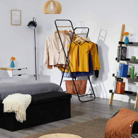 Stopper an den Seiten verhindern das Verrutschen der Kleiderbügel. Einfache Montage - schnell aufgebaut und sofort einsatzbereit. Perfekt für Flur, Schlafzimmer oder Gästezimmer. Das schlichte schwarz-metall Design passt zu jedem Einrichtungsstil.
