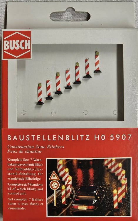 • Busch 5917 Super-Baustellenblitz HO - 15-teiliges Warnbaken Set Mit Blitzfunktion