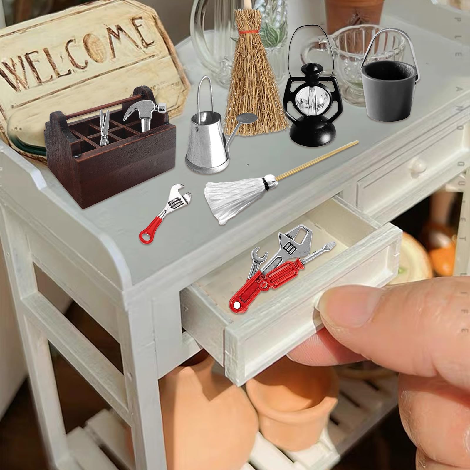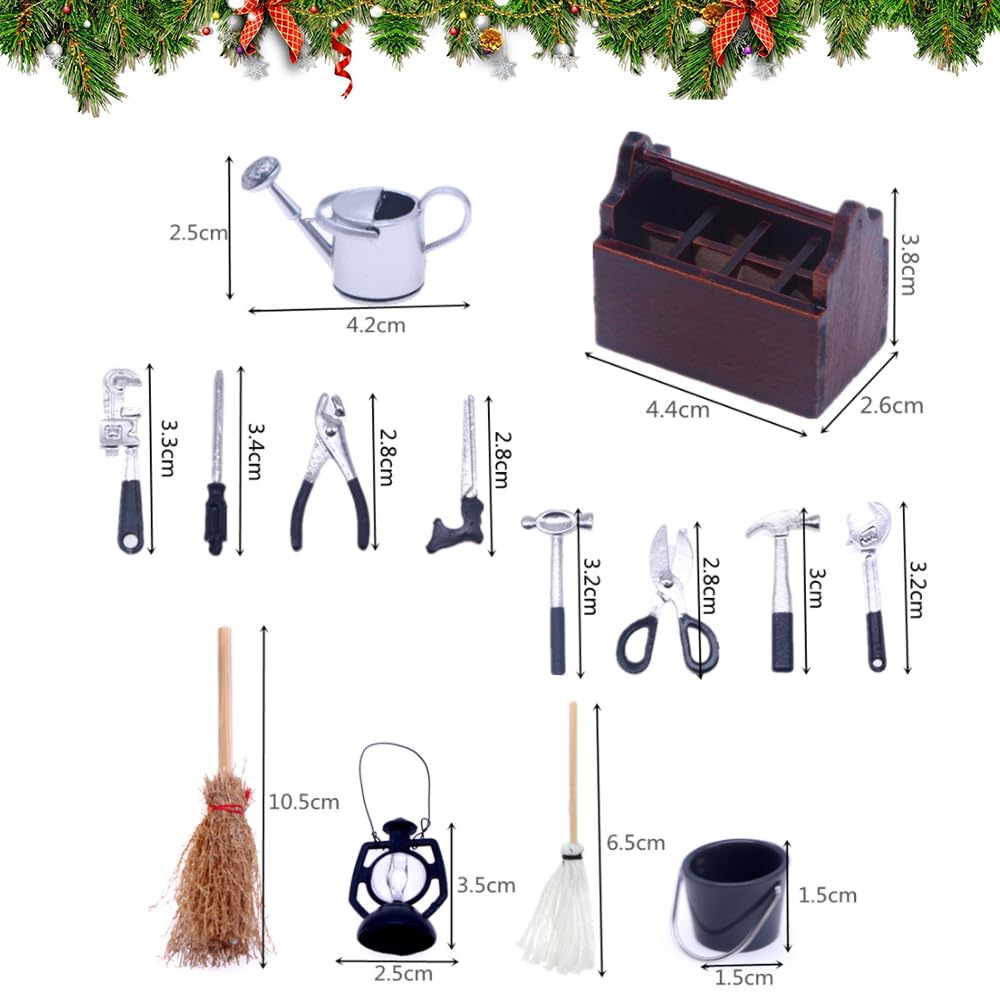 Bring Leben in deine Wichteltür! Dieses niedliche 15-teilige Set mit Miniatur-Wichtelzubehör verwandelt deine Weihnachtsdekoration in eine magische Wichtelwelt. Enthalten sind ein Werkzeugkasten, 8 verschiedene Reparaturwerkzeuge, Mopp, Besen, Öllampe, Eimer, Gießkanne und Spaten - alles, was ein Wichtel für seine nächtlichen Abenteuer braucht! Hergestellt aus hochwertigem Harz und Holz, sind die Teile detailreich und sicher für Kinder. Perfekt um Szenen vor der Wichteltür zu gestalten und die Fantasie der Kleinen anzuregen. Ob als Geschenk für Weihnachten, Geburtstage oder einfach als besondere Deko - dieses Set bringt weihnachtlichen Charme in jedes Zuhause und inspiriert zu kreativen Wichtelgeschichten. Deine Kinder werden begeistert sein!