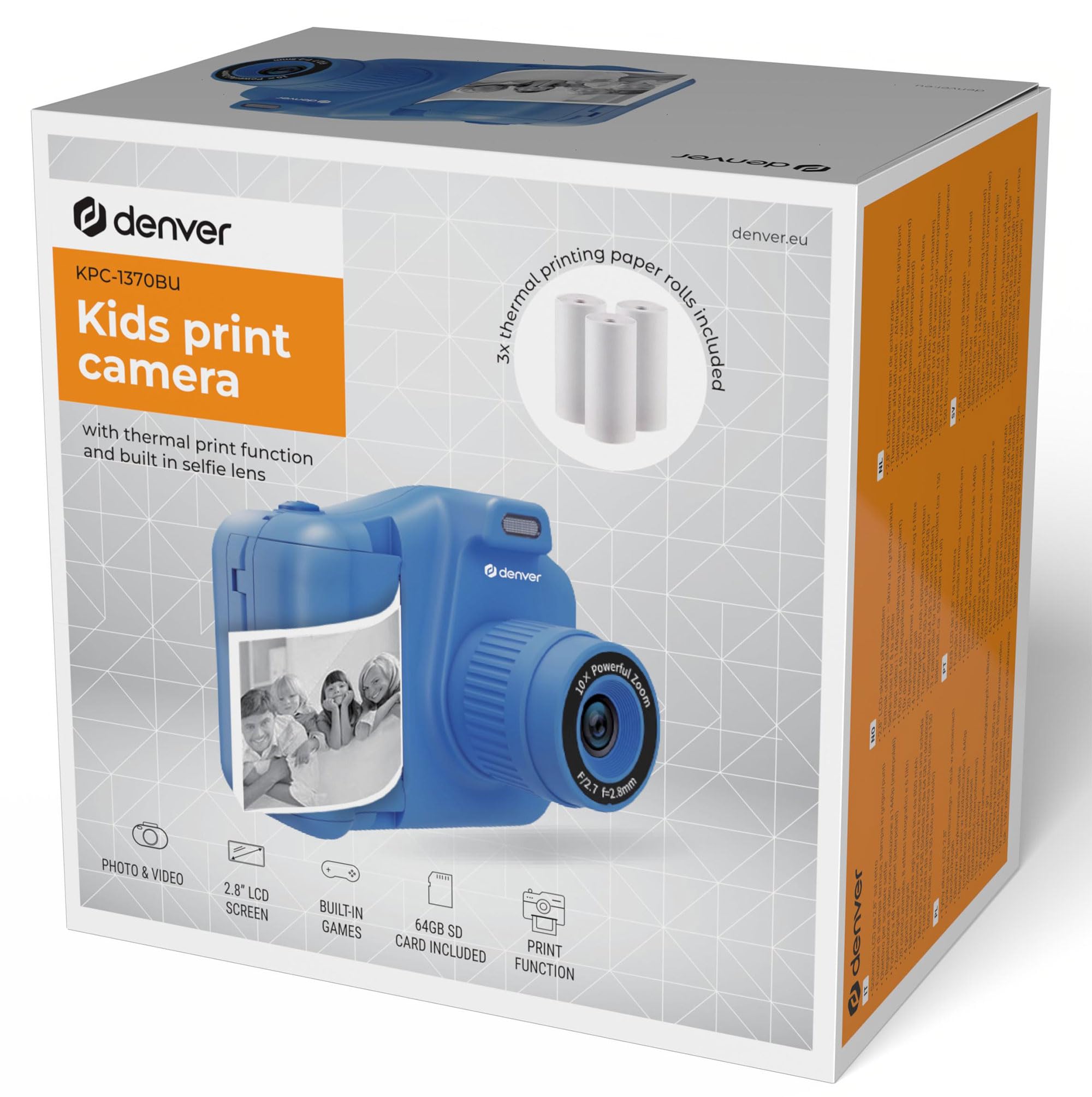 Wow, die Kids werden ausflippen! Diese Denver Sofortdruckkamera macht nicht nur Fotos - sie druckt sie sofort aus! Mit 48 Megapixeln (interpoliert) und 1440p Video - richtig gute Qualität für kleine Fotografen. Im Lieferumfang: 3 Rollen Thermopapier für 150 Fotos, 64GB SD-Karte und coole Extras! Mit 20 Cartoon-Rahmen, 8 Fotoeffekten und 6 Filtern - da können die Kinder richtig kreativ werden. 2,8 Zoll LCD-Bildschirm und 10-fach Digitalzoom - alles einfach zu bedienen. Selfie-Objektiv für lustige Selfies mit Freunden! Und wenn mal keine Fotos gemacht werden: 4 eingebaute Spiele (Snake, Push Box, Tetris, Ball) sorgen für Abwechslung. Wiederaufladbarer Akku - keine Batterien kaufen! Perfekt als Geburtstagsgeschenk oder für Weihnachten. Einfach einschalten, knipsen und staunen wie das Foto ausgedruckt wird!