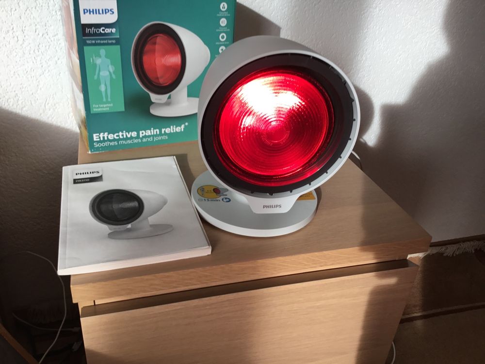 Hey, diese Infrarotlampe ist echt ein Allrounder für zu Hause! Stell dir vor: Du hast deine eigene Wärmetherapie-Station, mit der du Muskelverspannungen, Gelenkschmerzen und andere Wehwehchen einfach wegstrahlen kannst. Die 150W starke Lampe bringt es auf satte 100°C und wärmt dabei super angenehm und tiefenwirksam.\\n\\nDas Besondere: Die Lampe hat einen praktischen Timer und lässt sich um 360° verstellen - du kannst also jeden Körperbereich optimal erreichen. Ob Rücken, Nacken, Schultern oder Beine, hier ist alles möglich! Der Überhitzungsschutz sorgt dafür, dass nichts passieren kann.\\n\\nSuper praktisch:\\n• 1,8 Meter langes Kabel - du bist nicht an die Steckdose gefesselt\\n• E27-Fassung - jede handelsübliche Infrarot-Birne passt\\n• Faltbares Design - platzsparend verstauen\\n• Einfache Bedienung - einfach einschalten und entspannen\\n\\nIch nutze die Lampe regelmäßig nach dem Sport oder bei Verspannungen vom vielen Sitzen. Das tut einfach sooo gut! Und das Beste: Du sparst dir teure Massage-Termine und kannst die Wärme ganz bequem daheim genießen.\\n\\nDie Lampe ist übrigens nicht nur für Privathaushalte super, sondern auch für Praxen, Massagestudios oder Wellness-Einrichtungen. Die professionelle Qualität merkt man sofort - stabiles Eisen-Gehäuse, sichere Verarbeitung und eine angenehme, gleichmäßige Wärme.\\n\\Tipp: Kombiniere die Wärmetherapie mit leichten Dehnübungen - dann wirkt sie noch besser!