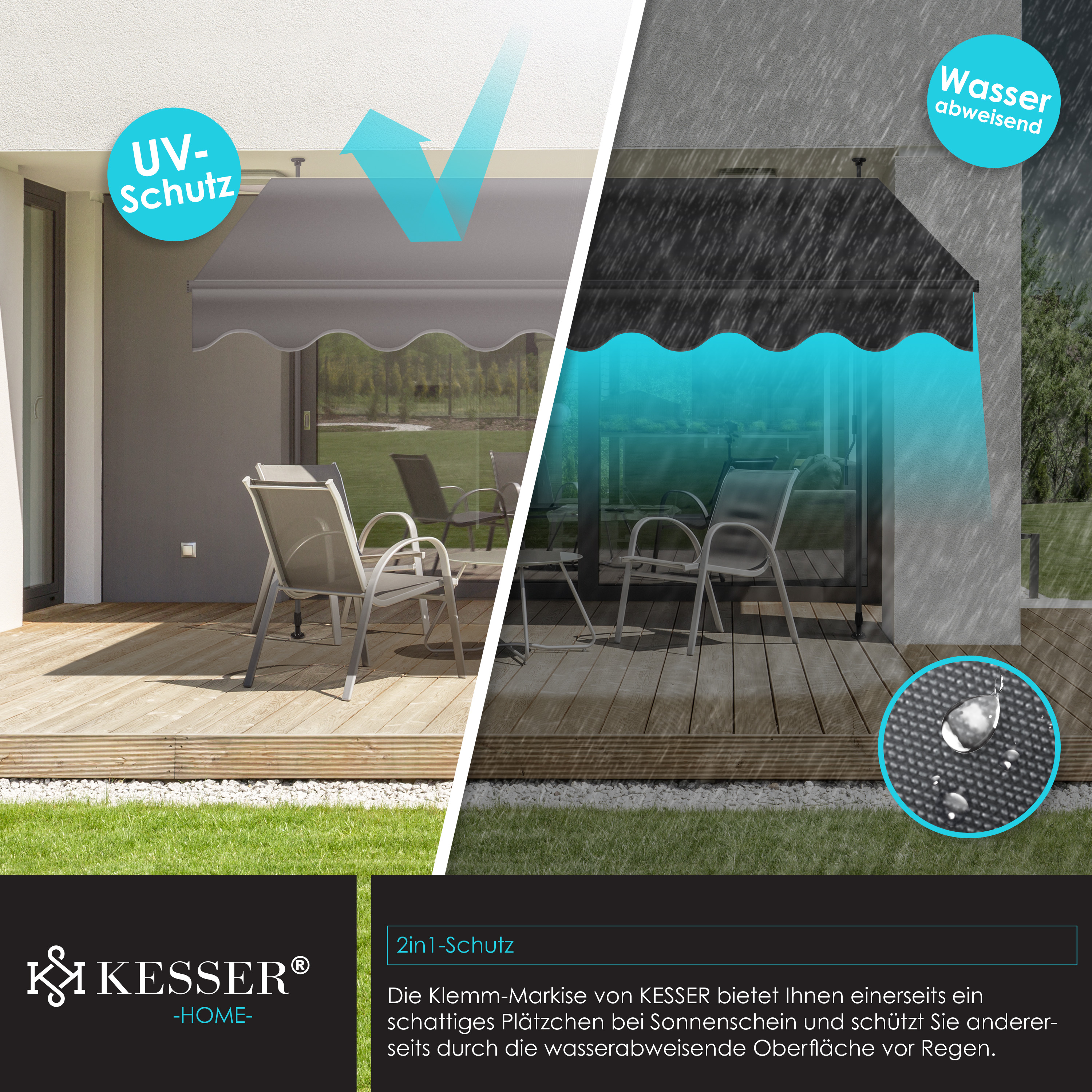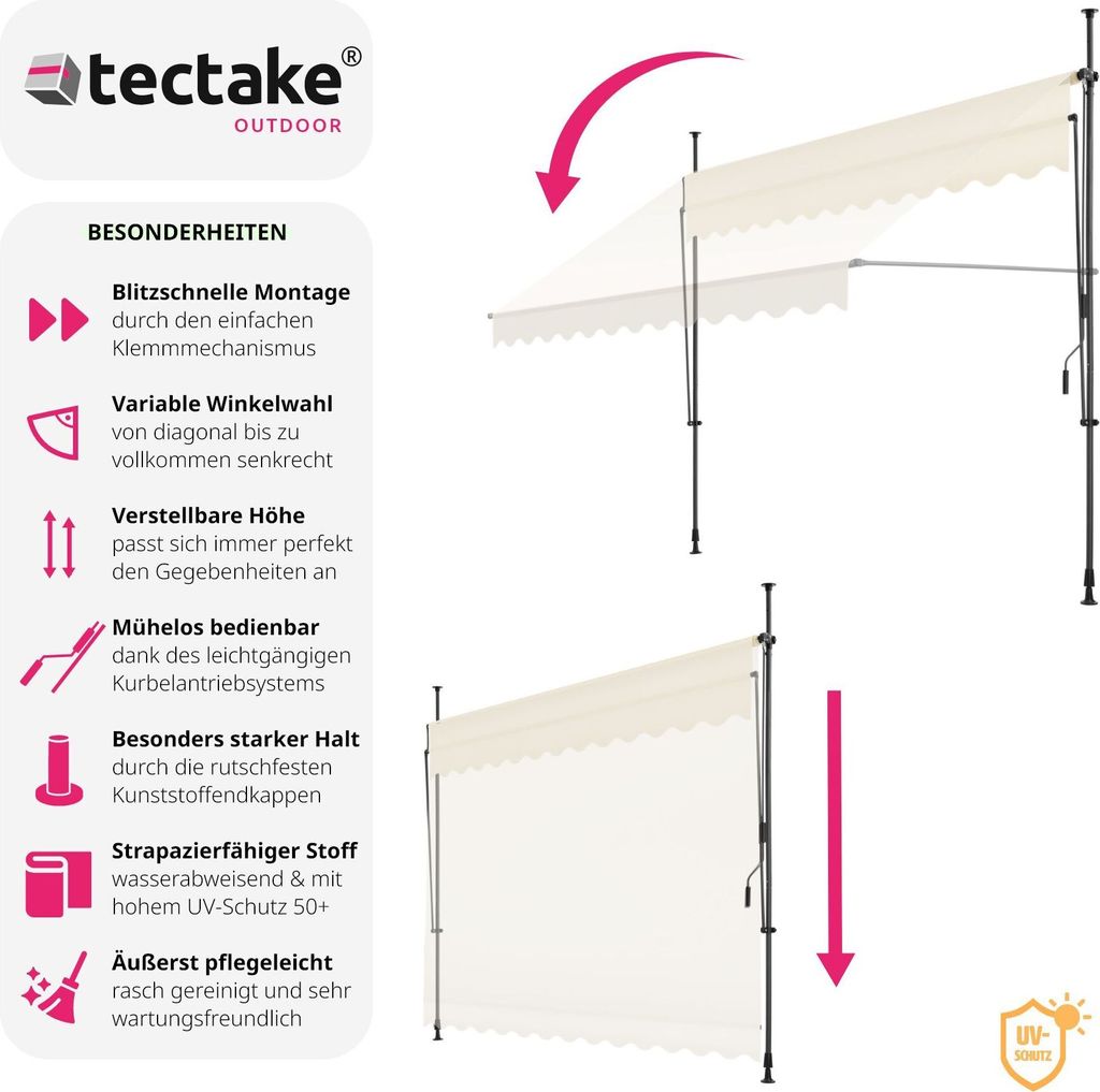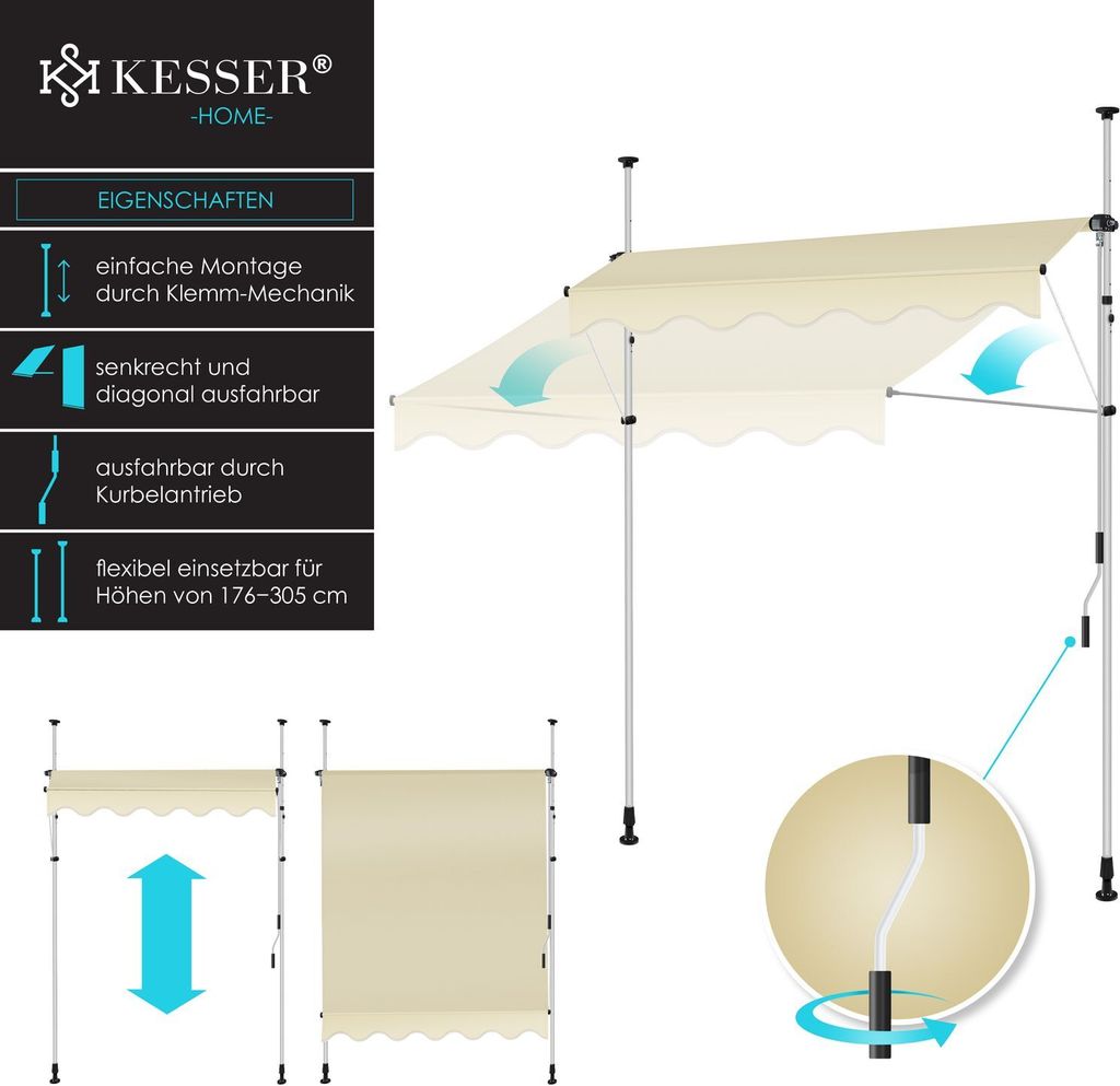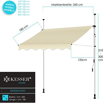 Diese Markise von FANTASK bringt endlich Schatten auf deinen Balkon! 150cm breit, höhenverstellbar von 200-300cm. Mit praktischer Handkurbel - einfach drehen und schon fährt die Markise aus. Der Aluminiumrahmen ist super stabil und hält auch etwas Wind stand. Das Polyester-Gewebe mit PU-Beschichtung ist wasserabweisend und UV-beständig - perfekt für den Dauereinsatz draußen. In Grau/Beige, passt zu fast jeder Hausfassade. Einfache Montage an der Wand, alles nötige Zubehör ist dabei. Ob auf dem Balkon, der Terrasse oder im Café - damit bist du perfekt vor Sonne geschützt. Schafft ein angenehm kühles Plätzchen zum Entspannen. Einfach ausfahren, Sonnenbrille aufsetzen und den Sommer genießen!