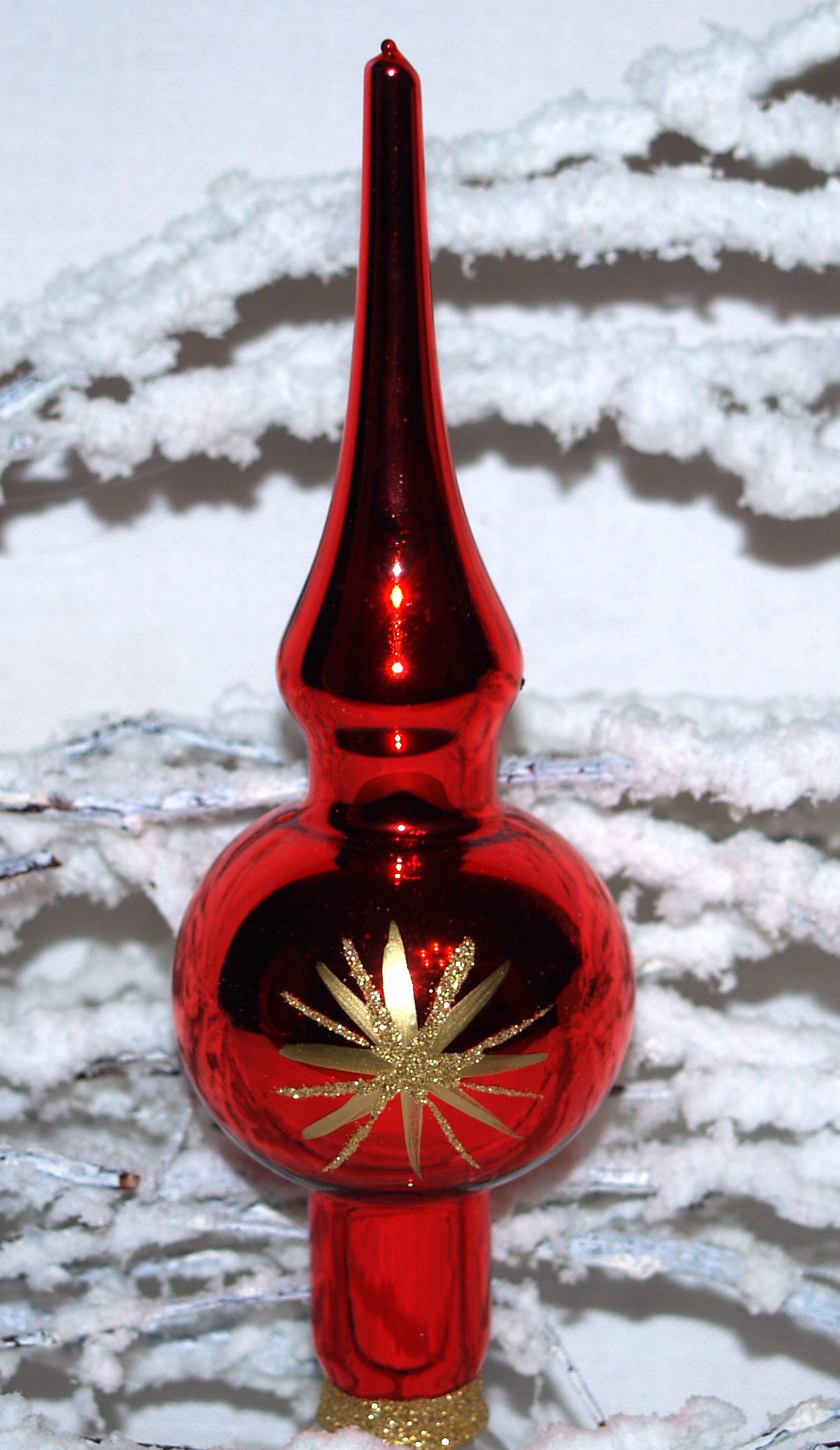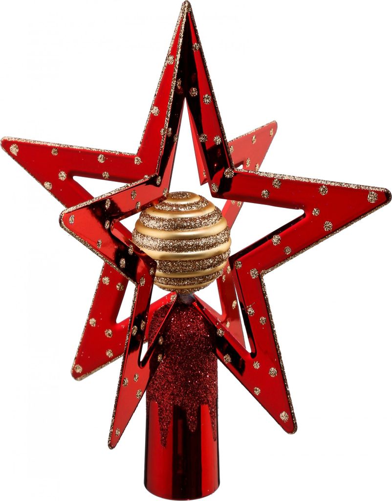 Jingle Bells Lauscha Christbaumspitze - 15cm Rot Matt Mit Stern
