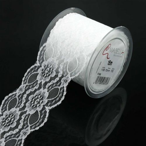 Spitzen Tischläufer 15cm X 10m - Weiß Schneidbar & Waschbar