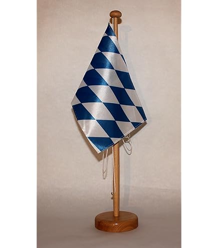 Für echte Bayern-Fans! Diese Tischflagge zeigt stolz die bayrischen Farben in Blau-Weiß. Mit 15x25cm perfekt für Konferenzen, Veranstaltungen oder einfach als Deko zu Hause. Beidseitig bedruckt, sodass sie von allen Seiten gut aussieht. Die sauber umnähten Ränder und die Flaggenleine machen sie zur echten Profiqualität. Dazu gibt's einen massiven Holzständer (ca. 42cm hoch), aber du kannst die Flagge auch ohne Ständer bestellen. Einfach bei 30°C waschen und mit niedriger Temperatur bügeln. Macht jeden Tisch gleich viel bayrischer und ist ein tolles Geschenk für Patrioten!