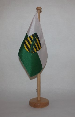 • Buddel-Bini Bayern Tischflagge 15x25cm - Bayrische Fahne Mit Massivholz-Ständer