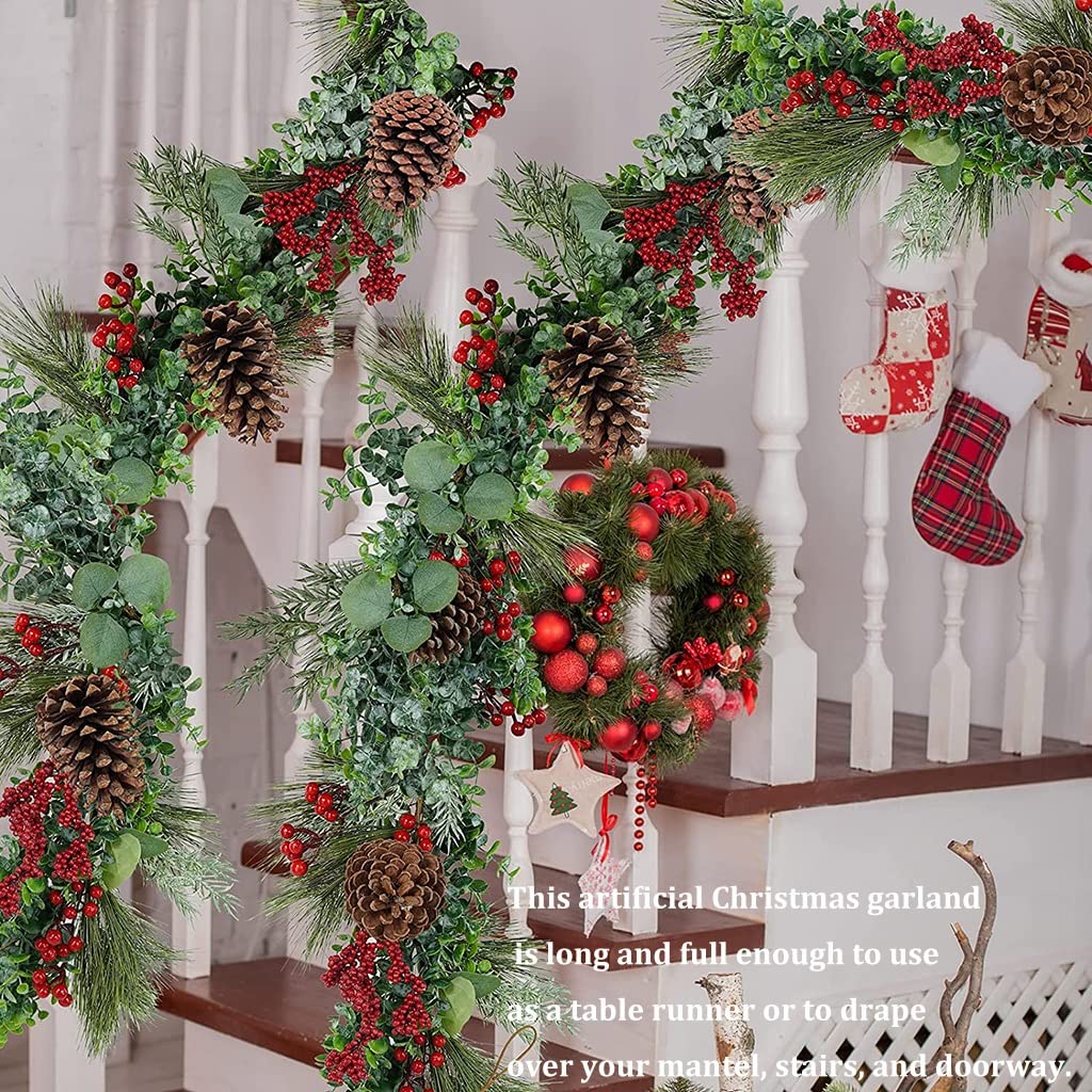 Weihnachtsstimmung pur! Diese 160cm lange Girlande aus künstlicher Tanne ist schon fertig geschmückt mit Christbaumkugeln, Zapfen, Beeren und Eukalyptus. Sieht aus wie echt, ist aber viel pflegeleichter. Perfekt für Kamin, Tisch, Fensterbank oder Treppengeländer. Die einzelnen Zweige lassen sich beliebig formen. Schafft sofort gemütliche Weihnachtsatmosphäre in jedem Raum. Einfach auspacken und dekorieren - fertig ist die Winterwunderland-Stimmung!