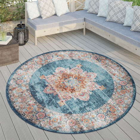 • Outdoor Teppich Rund 160cm - Vintage Design, Wetterfest Polypropylen