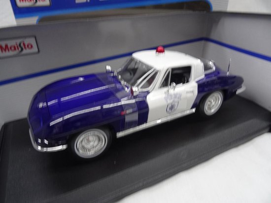 Maisto Chevrolet Corvette C1 Police 1/18 Modellauto - Polizei Schwarz 1953-1962 Mit Wunschkennzeichen