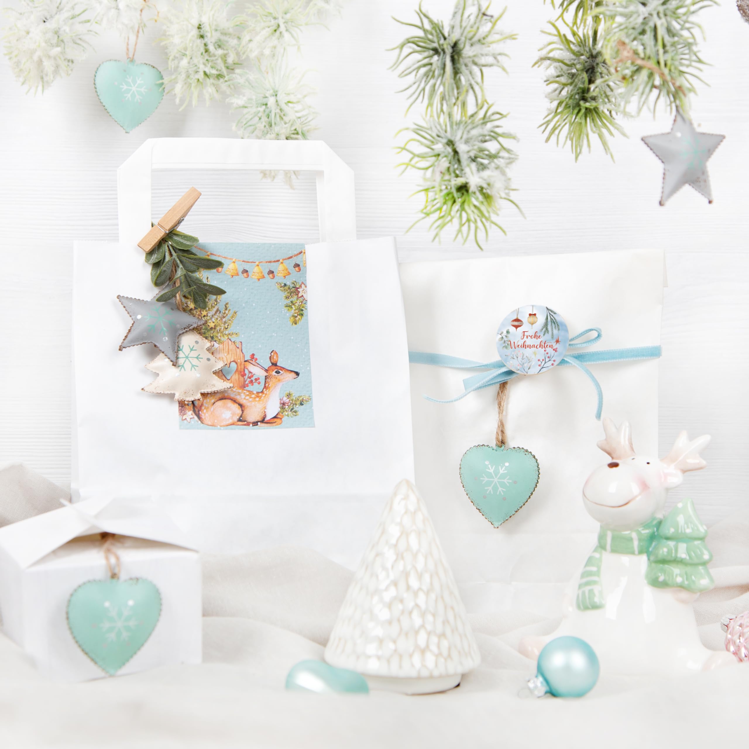 Stell dir vor: Dein Weihnachtsbaum glänzt und glitzert mit diesen wunderschönen Anhängern! Im Set sind 18 verschiedene Metall-Anhänger in den Farben Schwarz, Weiß und Gold - je 6 Herzen, 6 Sterne und 6 Tannenbäume. Jeder Anhänger ist etwa 4,5-5,5 cm groß und hat eine praktische Aufhängeschnur. Super vielseitig einsetzbar: Nicht nur für den Weihnachtsbaum, sondern auch als Geschenkanhänger für Weihnachtspäckchen, als Flaschen-Deko oder einfach als kleines Mitbringsel. Hergestellt mit Liebe in Bayern - da spürt man die Weihnachtsmagie gleich doppelt! Die gepunktete Optik gibt dem ganzen einen modernen Twist der super in jede Einrichtung passt. Weihnachten wird einfach schöner mit dieser Deko!