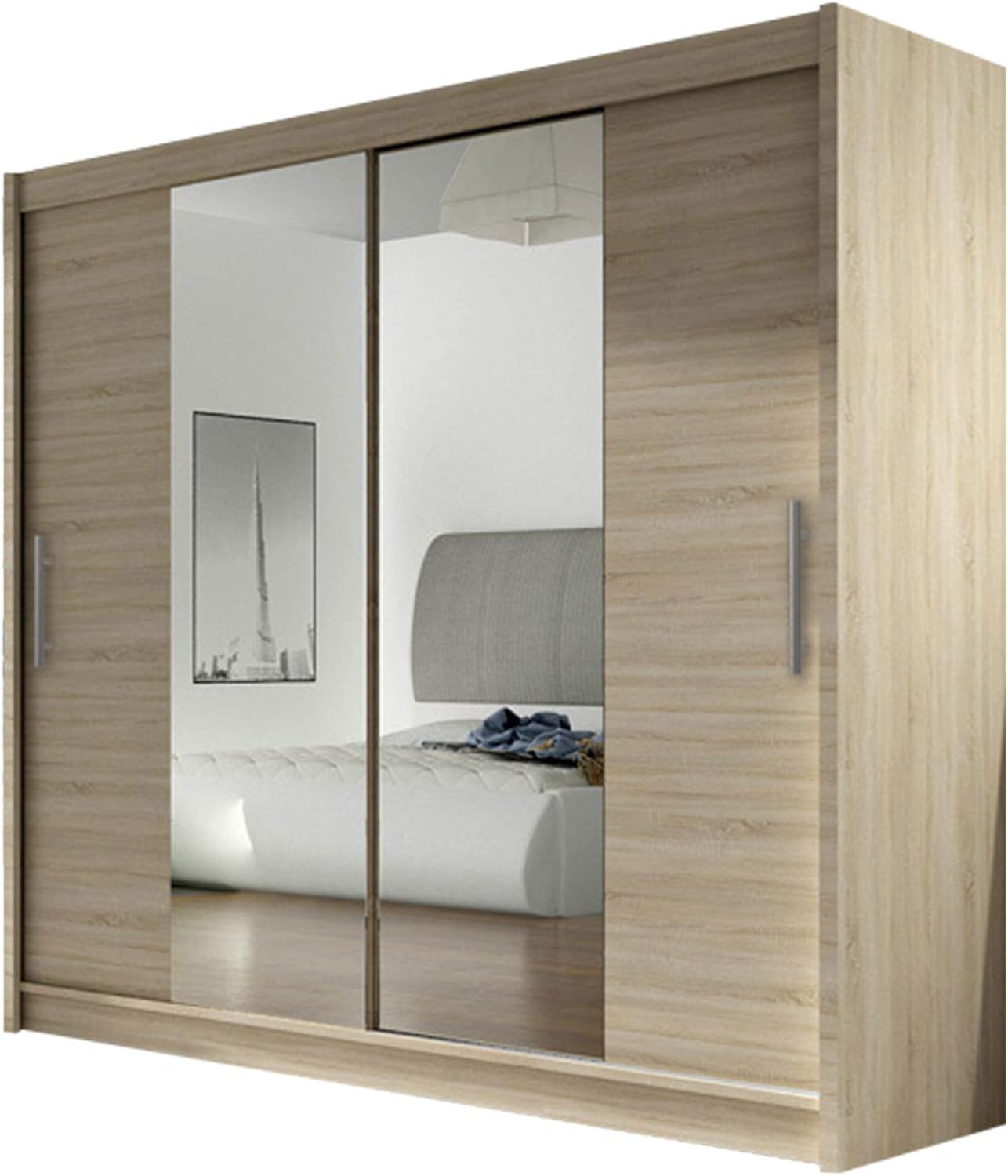 Platzprobleme im Schlafzimmer? Der Mirjan24 London IX Kleiderschrank bietet dir auf 180cm Breite und 215cm Höhe jede Menge Stauraum für deine gesamte Garderobe! Die praktischen Schiebetüren mit integriertem Spiegel sparen wertvollen Platz - ideal für kleinere Räume where normale Türen nicht aufgehen könnten. Das elegante Weiß passt zu jedem Einrichtungsstil und wirkt gleichzeitig hell und freundlich. Die hochwertigen Aluminium-Gleitschienen von Sevroll (Typ Micra) garantieren ein leichtes und geräuscharmes Schieben der Türen. Innen findest du eine praktische Kleiderstange für deine Oberteile und Jacken, plus geräumige Fächer für alles andere. Mit 57cm Tiefe bietet der Schrank auch für sperrige Kleidungsstücke genug Platz. Besonderes Highlight: Optional ist eine RGB-LED-Beleuchtung erhältlich für noch mehr Ambiente! Der Schrank kommt als Bausatz mit detaillierter Montageanleitung - zwar etwas Arbeit, aber das Ergebnis lohnt sich! Perfekt für Schlafzimmer, Flur oder sogar als Raumteiler im Wohnzimmer. Hol dir endlich Ordnung in deine Kleidung und verleihe deinem Zuhause einen modernen, stylischen Look mit diesem praktischen und schönen Kleiderschrank!