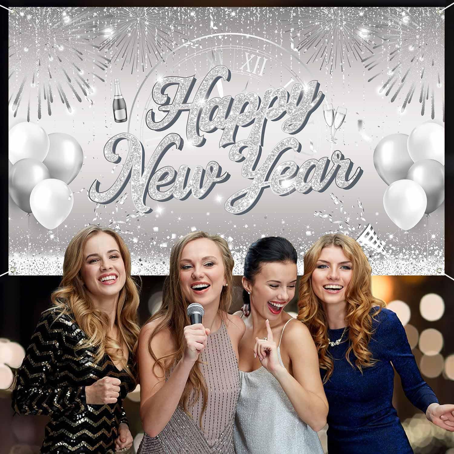 Das glänzende Silber mit der Aufschrift 'Happy New Year 2025' sieht einfach klasse aus. Perfekt für Fotos, als Hintergrund für die Feier oder einfach als Deko im Partyraum. Das Polyester-Material ist falbar und hält lange - kannst du also auch nächstes Jahr wieder verwenden.