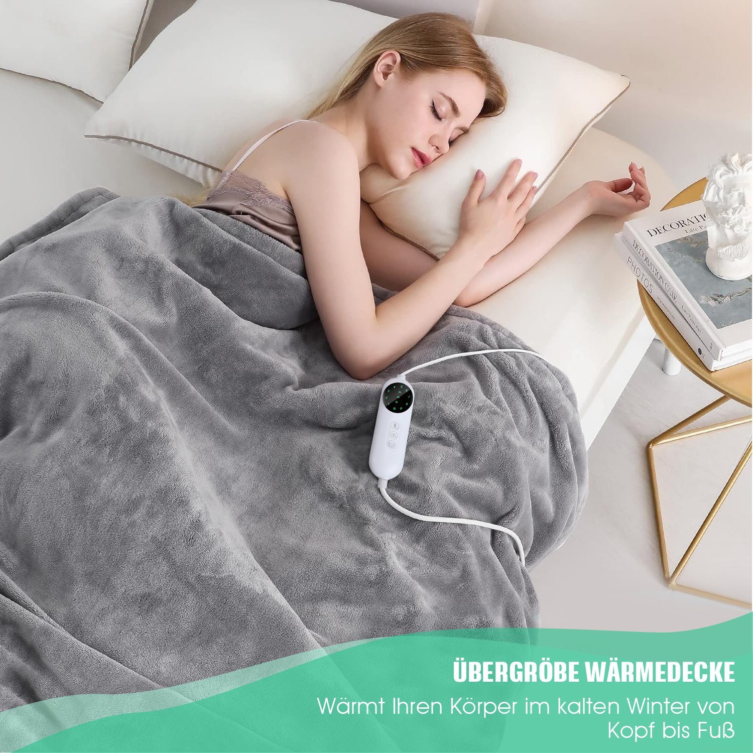 • LinTimes Heizdecke 180x130cm - 6 Temperaturstufen Mit 10h Abschaltautomatik, Maschinenwaschbar
