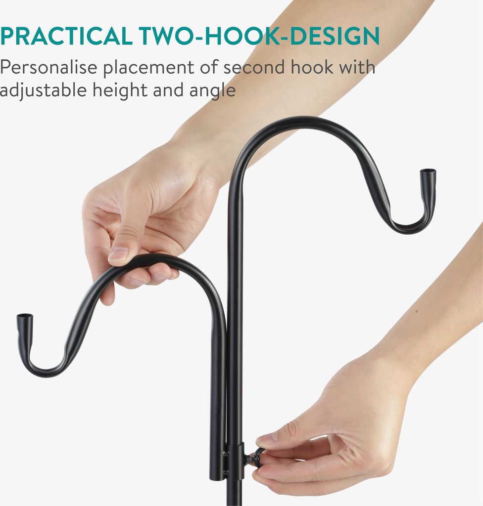 Mit 22,9 cm Abstand zwischen Haken und Stange - da passen auch dicke Vogelfutterspender oder große Blumentöpfe drauf. Sogar Windspiele oder Laternen!