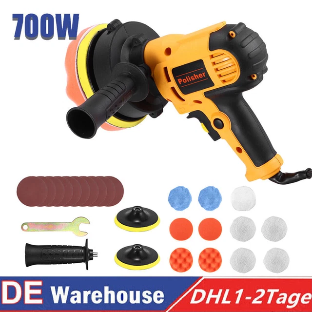 Professionelle Politur für dein Auto! Dieses 19-teilige Poliermaschinen-Set mit 700W Leistung macht dich zum Detailing-Profi. Mit stufenlos verstellbarer Geschwindigkeit von 600-3700 U/min - perfekt abgestimmt auf jede Aufgabe: niedrige Drehzahl zum Wachsen, mittlere zum Reinigen, hohe zum Entfernen von Lackschäden. Das kabellose Design gibt dir maximale Bewegungsfreiheit. Mit nur 1,2 kg Gewicht ermüdest du auch bei langen Arbeiten nicht. Der verriegelbare Schalter und der ergonomische Griff sorgen für komfortables Arbeiten. Der bürstenlose Motor mit Kupferkern arbeitet leise und effizient ohne Überhitzung. Im Lieferumfang: Polierer, verschiedene Polier- und Schleifscheiben, Handschuhe, Reinigungstuch und Zubehör. Ideal für Autos, Boote, Möbel und vieles mehr. Mach deinen Fahrzeugen den perfekten Glanz!