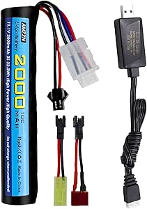 Power für deine Airsoft-Modelle! Dieses Set enthält 2 wiederaufladbare Li-ion Akkus mit je 11.1V und 2000mAh Kapazität. Mit 10C Entladungsrate für starke Performance. Perfekt für M4, AK47, AEG, MP5 und viele andere Airsoft-Modelle. SM-2P Stecker für einfachen Anschluss. Im Lieferumfang: 2 Akkus, 2 USB-Ladekabel, 4 Adapterkabel und Bedienungsanleitung. Die Ladeanzeige zeigt den Status an - rot bei Stromanschluss, blinkend grün beim Laden, dauerhaft grün bei voller Ladung. Maße: 108x18mm, nur 72g leicht. Ideal als Backup für lange Spieltage. Mit der praktischen Verpackungsbox sicher aufbewahrt. Hol dir die nötige Power für maximale Performance auf dem Airsoft-Feld!