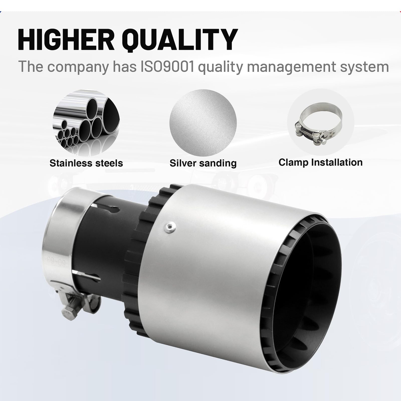 Dieses coole Auspuff-Endrohr gibt deinem Auto den letzten Schliff! Doppelschicht-Design: innen Edelstahl, außen Carbon-Optik in mattem Schwarz. Einlass: 2,25 Zoll (57mm) - passt für viele Modelle. Auslass: 3,5 Zoll (89mm) für sportlichen Look. Gesamtlänge 25cm, Breite 19cm. Einfache Montage mit beiliegender Klemme - kein Schweißen nötig! Einfach aufschieben, festziehen, fertig. Verbessert den Abgasfluss und sieht einfach mega aus. Hitzebeständig und rostfrei - hält auch bei schlechtem Wetter. Wichtig: Vorher Endrohr-Durchmesser und Platz zur Stoßstange prüfen (mind. 1cm Abstand!). Einfach einbauen und dich über den sportlichen Sound und Look freuen!