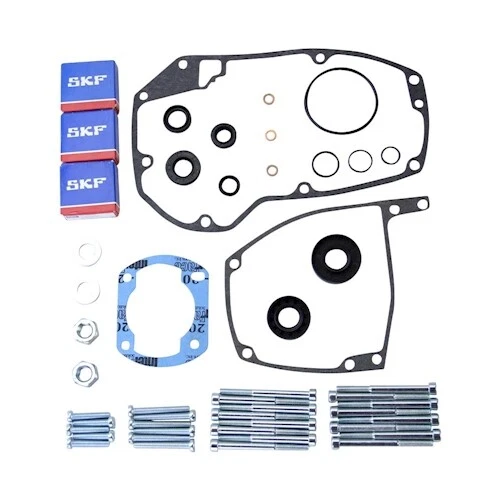 Im Set: 4 Wellendichtringe in verschiedenen Größen (16x24x3mm, 15x30x5mm, 15x35x9mm, 15x32x5,5mm), hochwertige Papierdichtungen, Kupferdichtring M10, verschiedene Gummi-Dichtringe, 2 SKF Kugellager 6202C3, Nadellager 12x15x13mm, 32-teiliges Schraubenset und Vergaserreparatursatz für Bing 85er Vergaser.