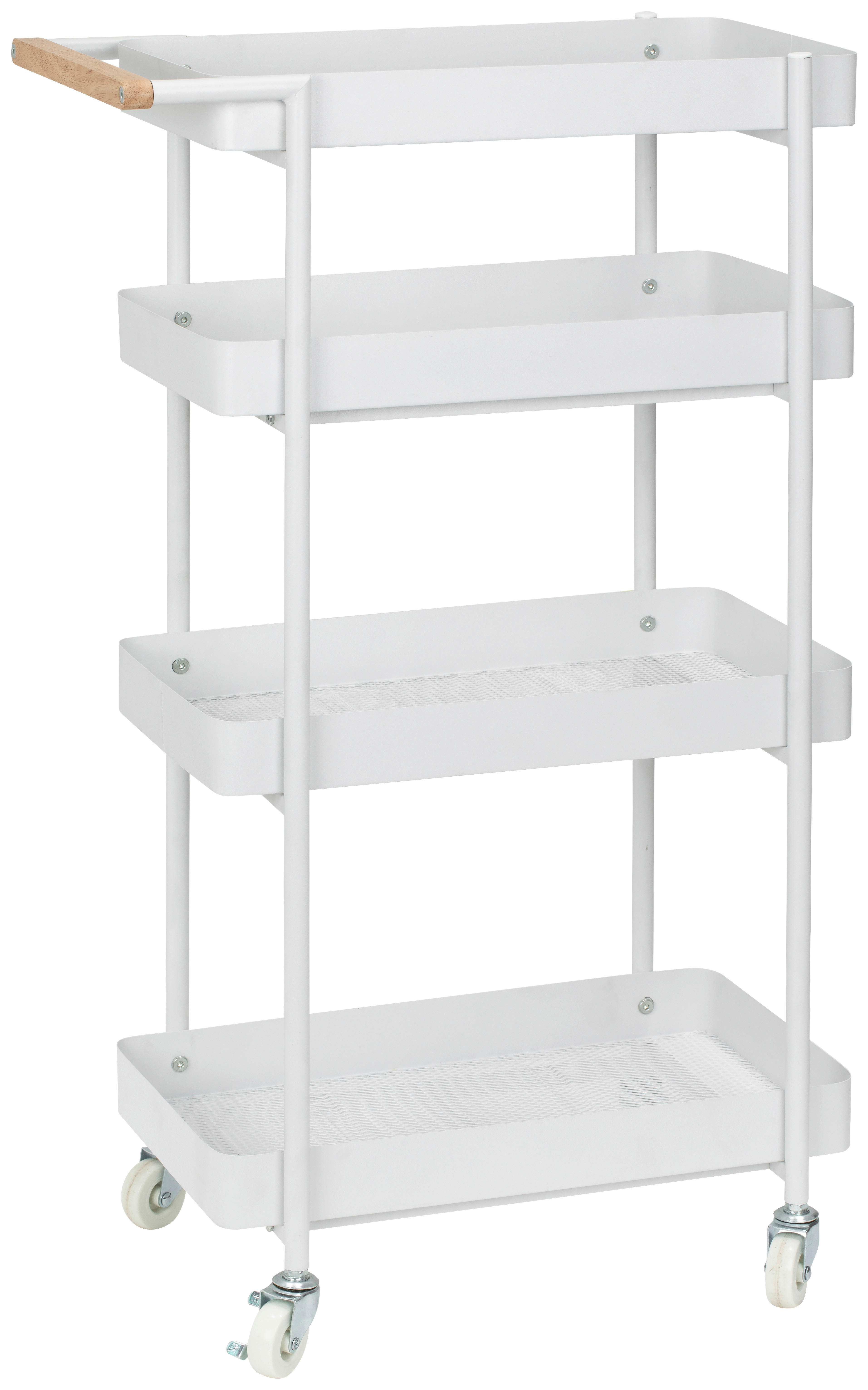 Der Metaltex Oslo Allzweckwagen ist einfach super praktisch für jeden Haushalt! Mit zwei großen Körben bietet er jede Menge Stauraum für Küchenutensilien, Putzmittel oder auch als Servierwagen für Partys. Die Maße von 41x26x52cm sind genau richtig - nicht zu groß, nicht zu klein. Das coole an der Oslo-Serie ist die Chrometherm-Beschichtung, die nicht nur super aussieht wie Chrom, sondern auch umweltfreundlich und rostbeständig ist. Der Aufbau ist total einfach und geht komplett ohne Werkzeug - einfach die Teile zusammenschieben und fertig! Die Körbe sind schön stabil und halten auch schwerere Sachen problemlos aus. Ob in der Küche, im Bad oder im Wohnzimmer - dieser Wagen ist überall einsetzbar und sieht dabei noch richtig stylisch aus. Einfach ein Allrounder, der das Leben leichter macht!