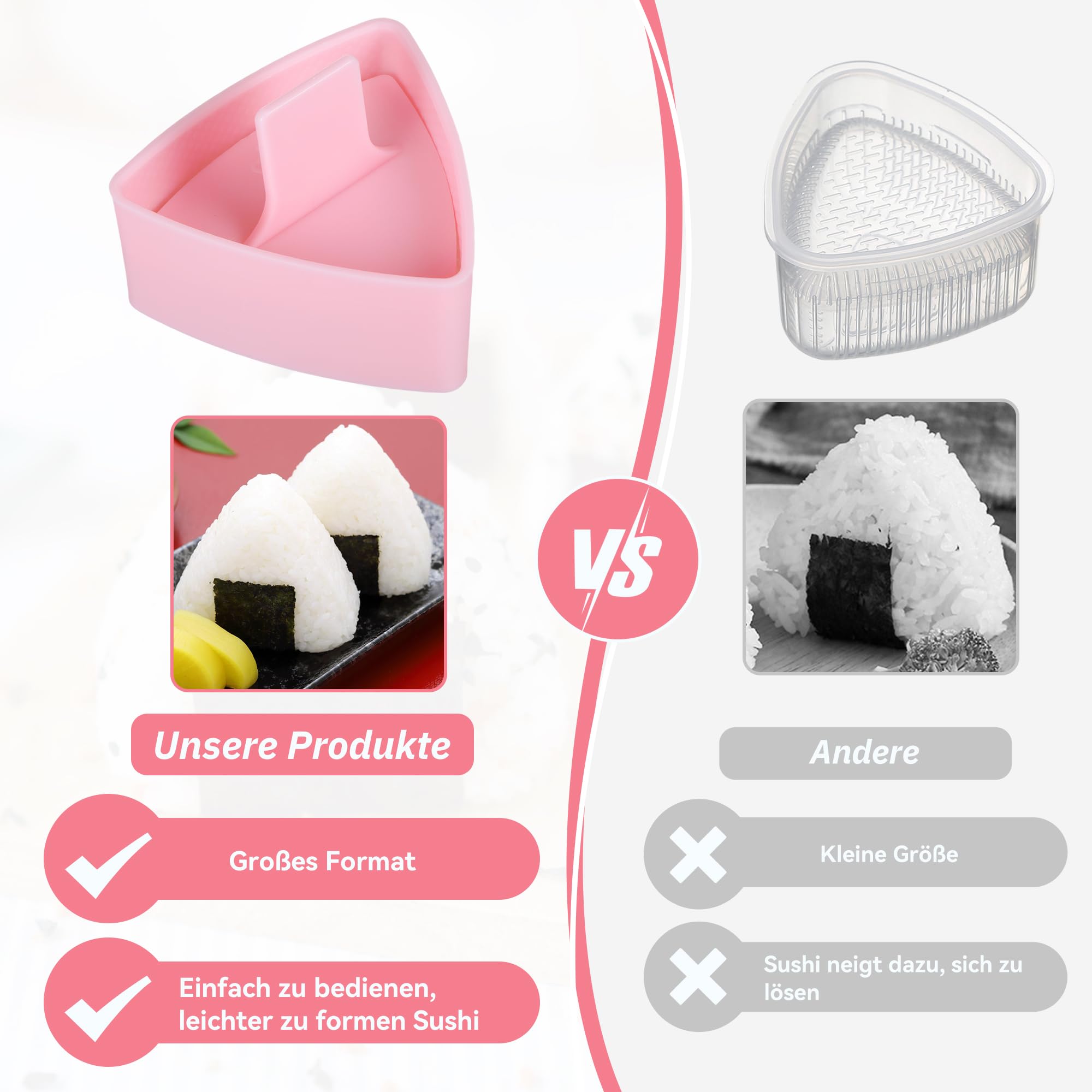 Hey, jetzt kannst du ganz easy zu Hause Sushi machen! Dieses Set hat 2 Formen - eine große (8,9cm) in Beige und eine kleine (5,4cm) in Rosa. Dazu 100 Einweg-Onigiri-Beutel und 100 Aufkleber - alles was du brauchst! Aus lebensmittelechtem PP-Material, BPA-frei und sogar mikrowellengeeignet. Die Formen haben eine praktische Lasche - so bekommst du die Reisbällchen ohne klebrige Finger raus! Die Beutel haben süße Muster und sind perfekt für Bentoboxen oder Snacks unterwegs. Mit den Aufklebern kannst du verschiedene Geschmacksrichtungen kennzeichnen. Super für Partys, Picknicks oder einfach wenn du mal was Anderes kochen willst. Auch toll für Kinder - die lieben das! Einfach Reis in die Form, drücken und fertig ist dein perfektes Onigiri. Macht Sushi machen zum Kinderspiel - selbst für absolute Anfänger! Einfach mal ausprobieren und staunen, wie professionell deine Sushi aussehen!