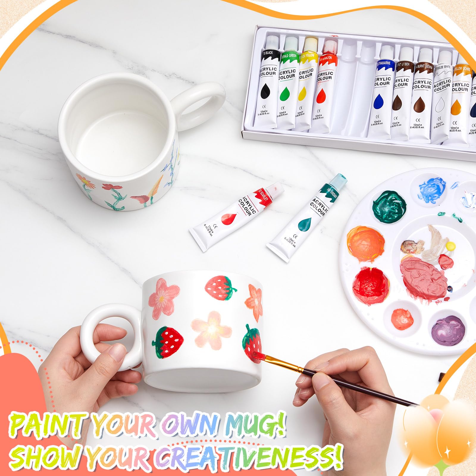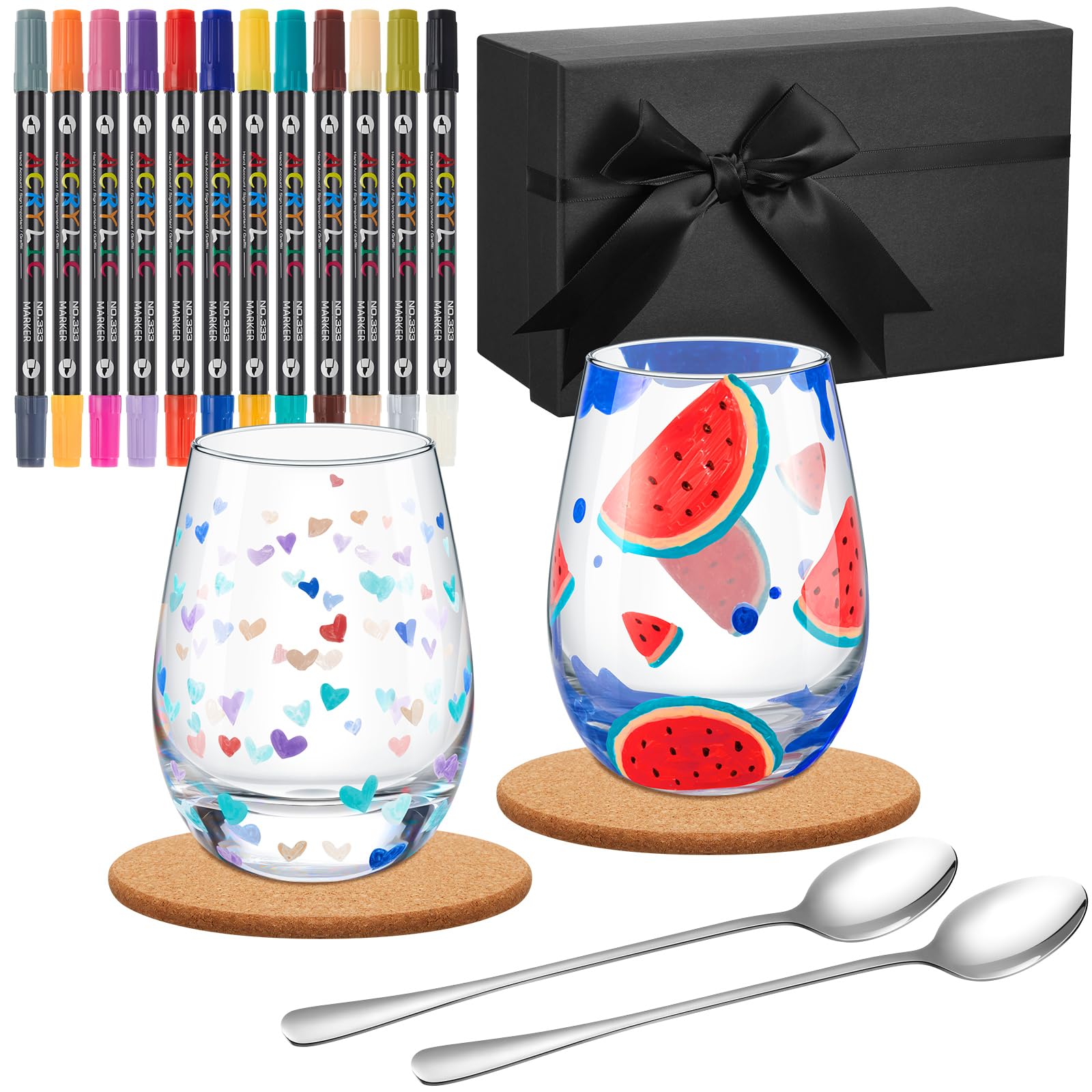 Mach deine Tasse zum Unikat! Dieses komplett Malset enthält alles, was du für kreative Kaffeemomente brauchst: 2 weiße Glasbecher (420ml), 12 bunte Glasmalstifte, 2 edle Korkuntersetzer und 2 silberne Löffel - alles verpackt in einer schicken Geschenkbox. Einfach die Tasse bemalen, 12-24 Stunden trocknen lassen und schon hält die Farbe! Perfekt für Paare, beste Freunde oder kreative Familien. Ob romantische Motive, lustige Sprüche oder abstrakte Kunst - hier kann jeder sein künstlerisches Talent ausleben. Super als Geschenk für Geburtstage, Jahrestage oder einfach so. Achtung: Nicht in die Spülmaschine und bitte keinen Ofen zum Fixieren verwenden! Einfach mit der Hand abspülen und dein Kunstwerk bleibt erhalten.