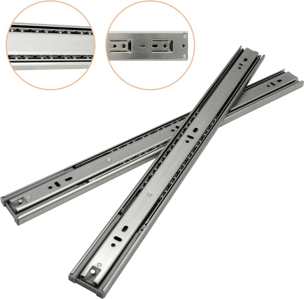 Sanftes Gleiten für deine Schubladen! Diese 2 Paar kugelgelagerten Schubladenschienen (350mm Länge, 27mm Höhe) sorgen für müheloses Öffnen und Schließen. Mit Teilauszug von 236mm und bis zu 15kg Tragkraft. Aus robustem verzinktem Stahl - korrosionsbeständig und langlebig. Einfache seitliche Montage mit Standard-Befestigungslöchern. 10 Jahre Garantie! Perfekt für Küchen, Büromöbel, Schränke und Kommoden. Mach deine Möbel funktionaler - mit professionellem Gleitsystem für täglichen Komfort!