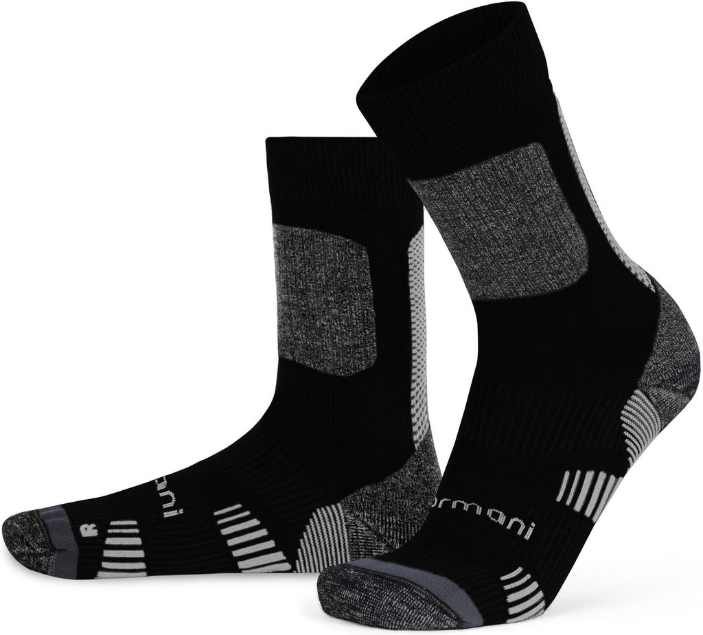 Diese Merino-Socken von normani sind einfach der Traum für jeden Outdoor-Fan! Hergestellt in Europa mit fairer Merinowolle (ohne Mulesing), die super weich ist und nicht kratzt. Die leichte Polsterung an der Frotteesohle sorgt für extra Komfort beim Wandern, Joggen oder auch einfach nur beim Stadtbummel. Die flache Naht an den Zehen drückt nicht und der Gummibund sitzt perfekt, ohne einzuschneiden. Das Beste: Die Merinowolle transportiert Feuchtigkeit super schnell weg und isoliert dabei optimal - deine Füße bleiben auch bei längeren Touren trocken und warm. Ob für leichte Wanderungen, Angeltouren oder den Spaziergang mit dem Hund - diese Socken sind deine perfekten Begleiter. Und das Design kommt aus Kassel, die Produktion ist in Italien - da weiß man, was man hat!