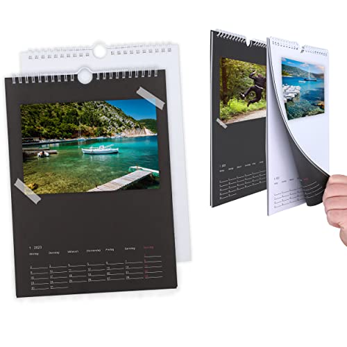 Kreative Köpfe aufgepasst! Mit diesem DIY Kalender-Set kannst du deinen eigenen, personalisierten Jahreskalender gestalten. Das Set enthält 2 schwarze Kalender im DIN A4 Format (29,6 x 21 cm) mit praktischer Spiralbindung oben - super zum Umblättern!