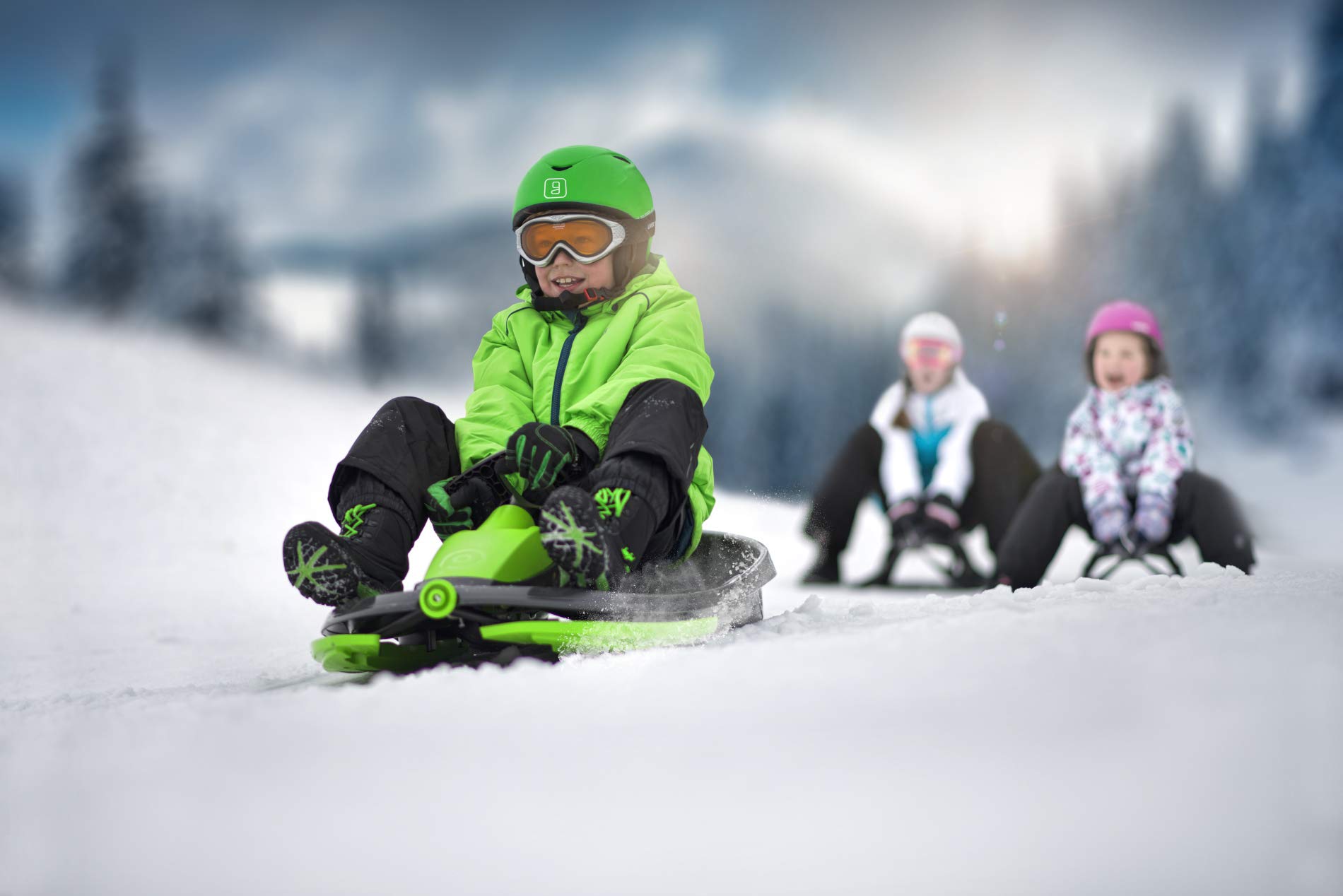 Winter-Spaß für die ganze Familie! Der Stratos Skischlitten von Gizmo Riders bringt Action und Sicherheit zusammen. Mit Platz für zwei Personen wird der Rodelausflug zum gemeinsamen Erlebnis. Das besondere: Die Differentiallenkung ermöglicht super präzise Kurvenfahrt - kein wildes Herumrutschen mehr! Die tiefe Grabbremse stoppt dich sicher und schnell, egal wie schnell du unterwegs bist. Aus UV-beständigem Kunststoff gebaut, rostet nichts und die Teile klikken einfach zusammen - kein langes Zusammenbauen. Der niedrige Schwerpunkt und der gerippte Boden verhindern Umkippen, selbst bei rasanter Fahrt. Für Kinder ab 6 Jahren geeignet und hält bis zu 250 Pfund aus. In coolen Mystic Green macht er nicht nur auf der Piste was her, sondern ist auch ein echter Hingucker. Ob am Skihang oder im heimischen Garten - mit diesem Schlitten wird jeder Wintertag zum Abenteuer!
