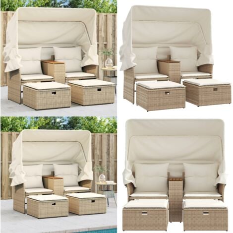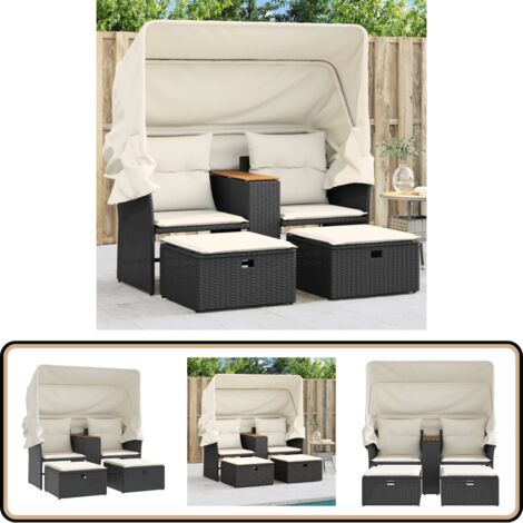 Endlich mal so richtig abschalten und die Natur genießen! Mit diesem superbequemen Gartensofa mit Dach und praktischen Hockern wird dein Garten zum echten Erholungsparadies. Das Besondere: Der PE-Rattan (auch Poly Rattan genannt) sieht nicht nur aus wie echtes Rattan, ist aber viel robuster und wetterfest. Perfekt also für draußen! Und wenn die Sonne mal zu stark scheint, einfach das ausziehbare Sonnendach aufmachen - so hast du immer ein schattiges Plätzchen. Die dick gepolsterten Kissen laden zum gemütlichen Lümmeln ein, und die Bezüge sind abnehmbar und waschbar. Praktisch, oder? Der Hocker ist übrigens vielseitig: Entweder als Fußstütze nutzen oder als extra Sitzplatz für Besuch. Wichtig: Damit die Optik lange schön bleibt, am besten eine wasserdichte Abdeckhaube verwenden. Technische Details: Gesamtmaße mit Dach: 123 x 65 x 155 cm (B x T x H), ohne Dach: 122 x 65 x 62 cm. Sitzgröße: 110 x 60 cm, Sitzhöhe: 36 cm. Hält pro Sitz bis zu 110 kg aus. Kissen: Bezug aus 100% Polyester, Rückenkissen mit Baumwollfaser-Füllung. Also, worauf wartest du noch? Hol dir deine eigene Wohlfühloase für den Garten!