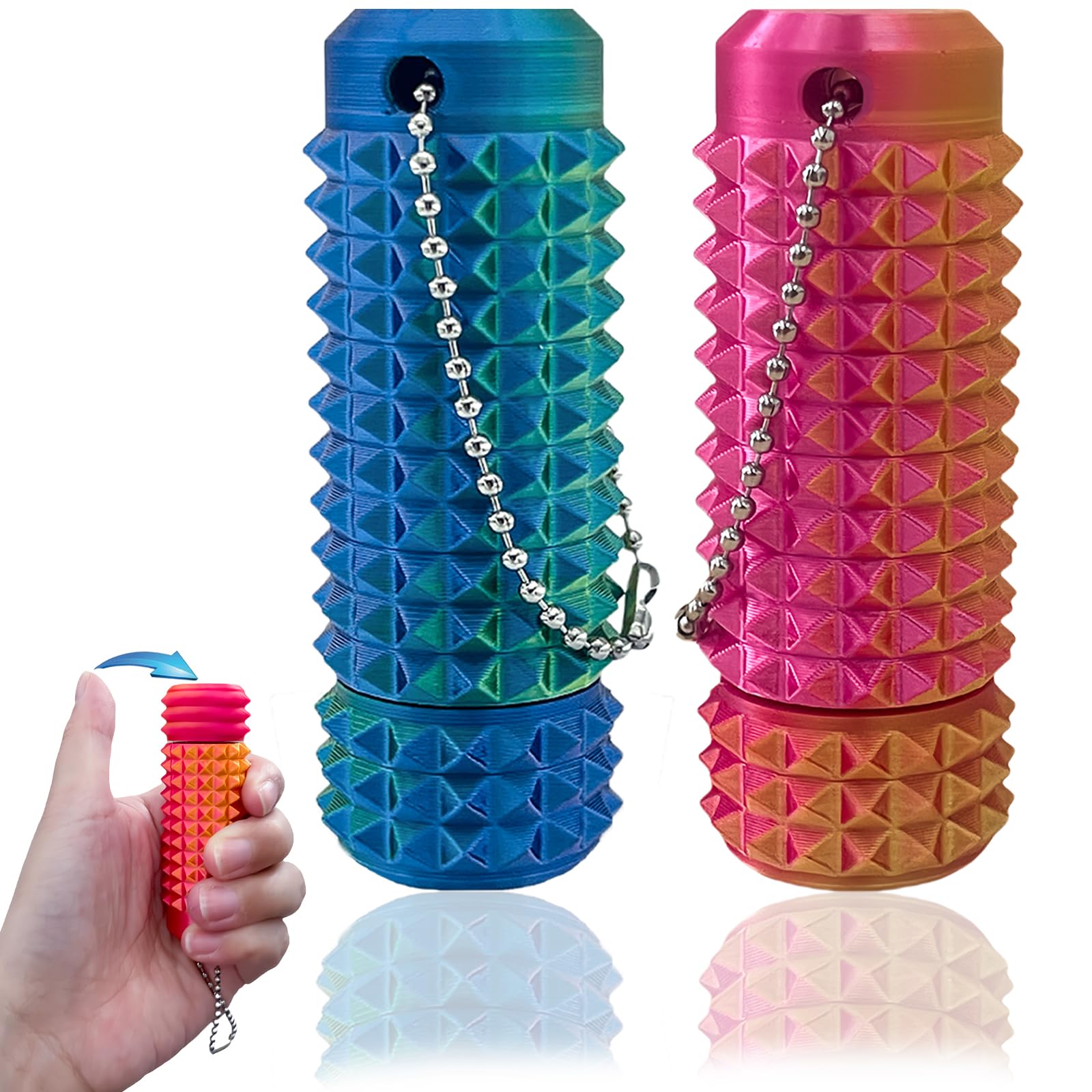 Perfekt gegen Stress! 2 Fidget Roller in Laser-Violett & Mehrfarbig mit weichen Stacheln für taktile Stimulation. Mit praktischem Keychain - immer griffbereit an Schlüsselbund oder Tasche. Aus bruchfestem Material für intensiven Gebrauch. Beruhigt unruhige Hände, fördert Konzentration. Ideal für Erwachsene und Kinder bei ADHS, Autismus oder einfach zum Abschalten. Kompakt, leicht und diskret!