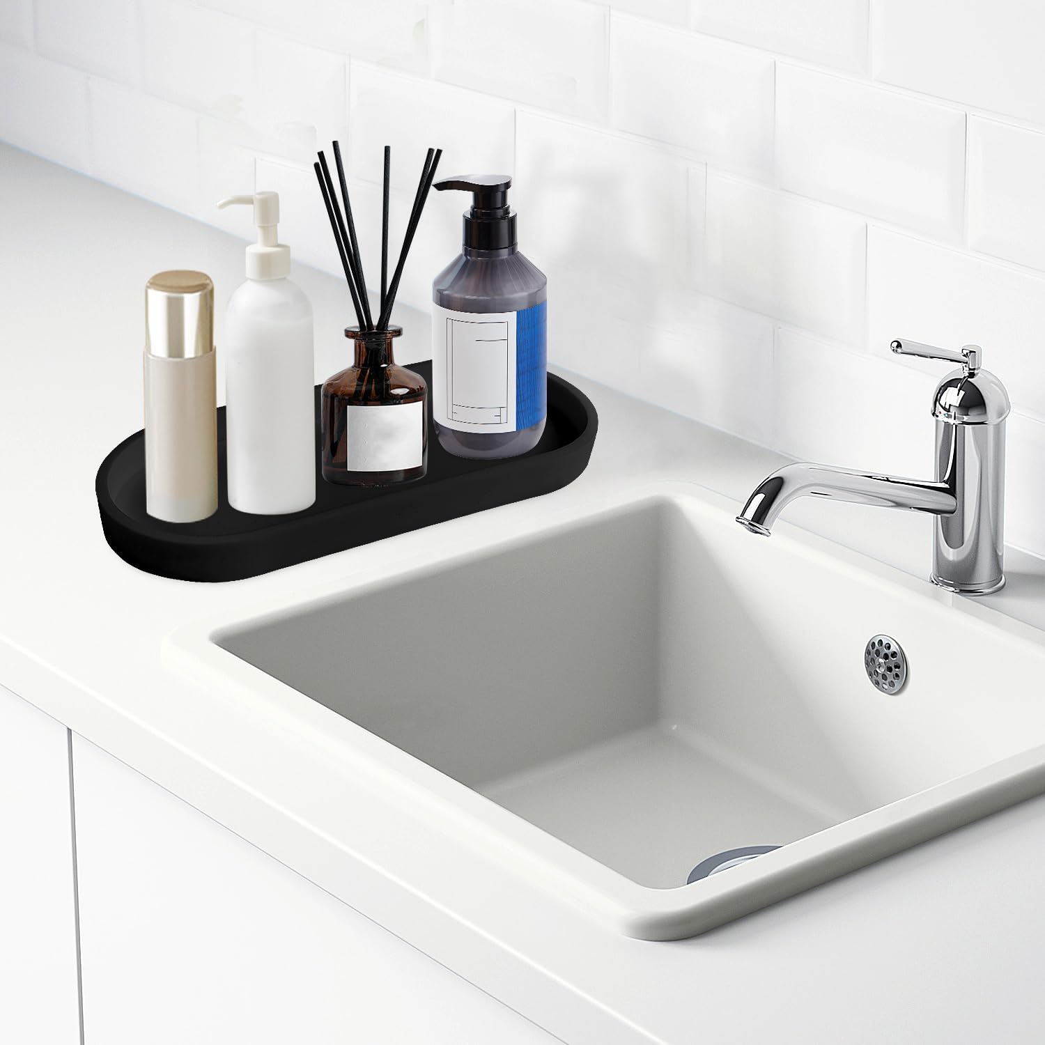 Ordnung im Bad? Diese beiden silikon Tabletts sind die Lösung! Maße: 20x10x2 cm - perfekt für Seifenspender, Zahnbürsten oder Kosmetik. Aus hochwertigem, flexiblem Silikon - rutschfest und wasserdicht. Erhöhter Rand verhindert das Auslaufen. Super einfach zu reinigen - einfach abwischen. Modernes schwarzes Design passt zu jedem Bad. Auch für die Küche oder auf Nachttischen geeignet. Spart Platz und sieht dabei noch stylisch aus. Einfach hinstellen und sofort mehr Ordnung! Macht aus Chaos sofort ein aufgeräumtes Bad. Einfach mal ausprobieren - du wirst begeistert sein!