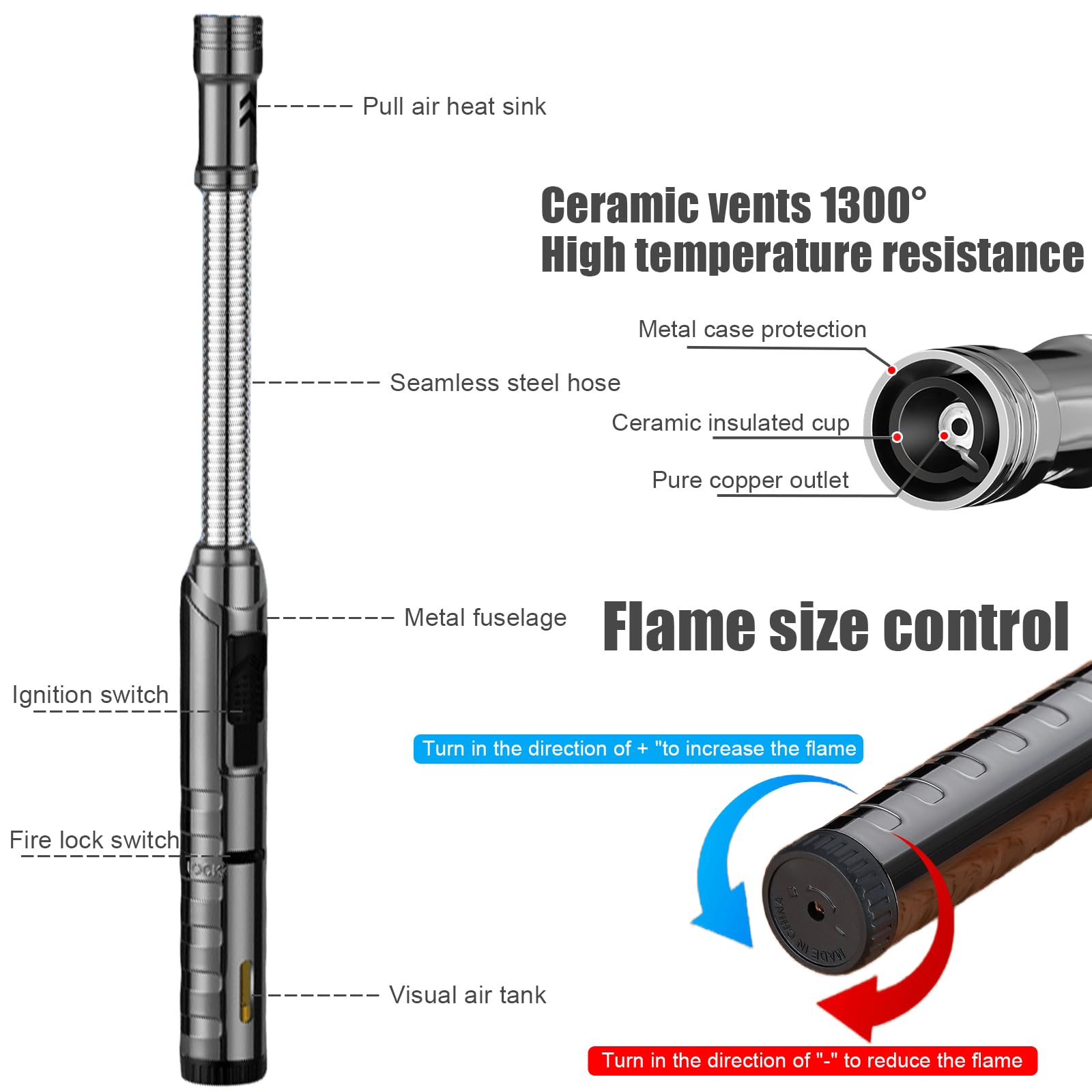 • 2 Stück Butan Feuerzeuge - Große Jet-Flamme Verstellbar Bis 1565°C