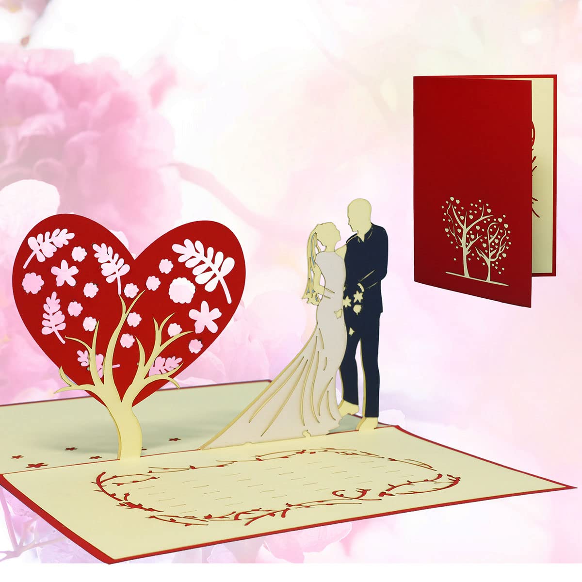 Wow-Effekt garantiert! Diese wunderschönen 3D Pop-up Karten in Gold sind das perfekte Geschenk für Hochzeiten, Jubiläen oder Valentinstag. Sobald du die Karte öffnest, entfaltet sich eine romantische 3D-Szene die jeden begeistert. Aus hochwertigem Perlmutt-Papier gefertigt - stabil und langlebig. Im Set: 2 Karten (18x12,5cm), 2 Umschläge und 4 Blanko-Karten für persönliche Grüße. Viel Platz für individuelle Nachrichten und Wünsche. Perfekt für Paare die etwas Besonderes suchen - diese Karte wird sicher aufgehoben! Mach deine Glückwünsche unvergesslich - bestell dieses bezaubernde Set!