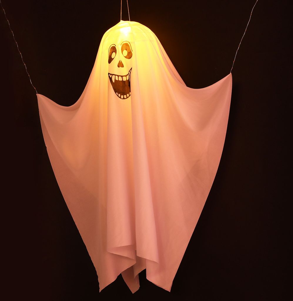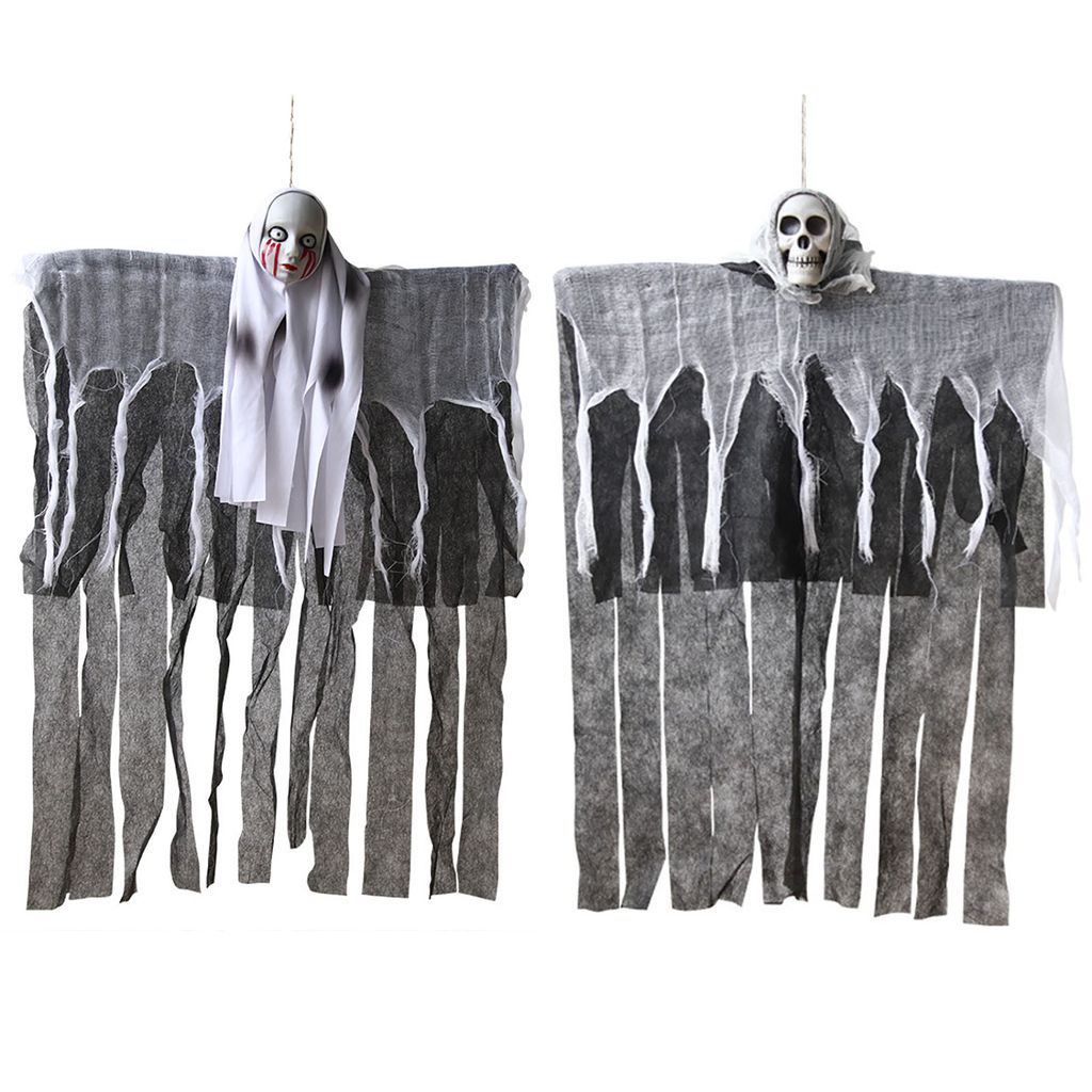 Boo! Mach dein Zuhause zur gruseligen Halloween-Partyzone mit diesen coolen Geister-Aufhängern! Die beiden weißen Geister schweben quasi in der Luft und sorgen für die perfekte Grusel-Atmosphäre. \\n\\nAus wasserfestem Polyester mit Schaumstoff-Kopf und flexiblen Armen - die halten auch bei Regen problemlos! Mit 40x50cm sind sie groß genug um gesehen zu werden, aber nicht zu aufdringlich. \\n\\nEinfach mit dem beiliegenden Band aufhängen - an Bäumen, der Veranda, der Haustür oder im Garten. Die Arme lassen sich sogar in verschiedene Positionen biegen! \\n\\nPerfekt für: \\n- Halloween-Partys \\n- 'Süßes oder Saures' \\n- Gartendekoration \\n- Schaufenster-Deko \\n\\nAchtung: Nicht für Kinder unter 3 Jahren geeignet - enthält kleine Teile! \\n\\nHol dir diese gruseligen Geister und verwandle dein Zuhause in eine echte Halloween-Höhle!