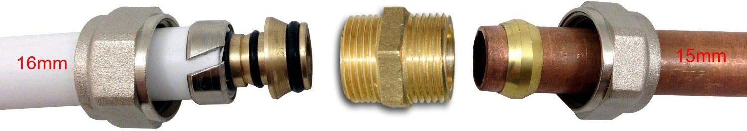 PEX Kupferklemmkupplung 15mm-16mm 2 Stück - Messing Verbinder Für Heizungsinstallation