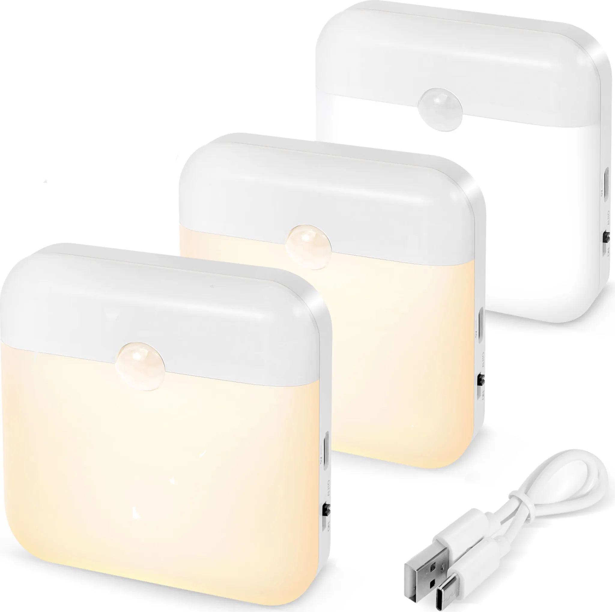 Perfekte Nachtlichter für Zuhause! Dieses Set mit 2 Stück hat alles, was man braucht: Bewegungsmelder mit 3-5m Reichweite, dimmbares warmweißes Licht (2800K) und USB-C Aufladung. Erkennt Bewegung im 120° Winkel und schaltet sich nach 20 Sekunden wieder ab. Mit 5 Helligkeitsstufen von 20% bis 100% - ideal für Kinderzimmer, Flur oder Bad. Kabellos und super leicht - kann aufgestellt oder aufgehängt werden. Lädt in 3-4 Stunden voll und hält dann 1-2 Monate! Automatik-Modus, Ein/Aus oder Dauerlicht - alles möglich. Einfach aufladen, hinstellen und sich über praktisches Licht freuen!