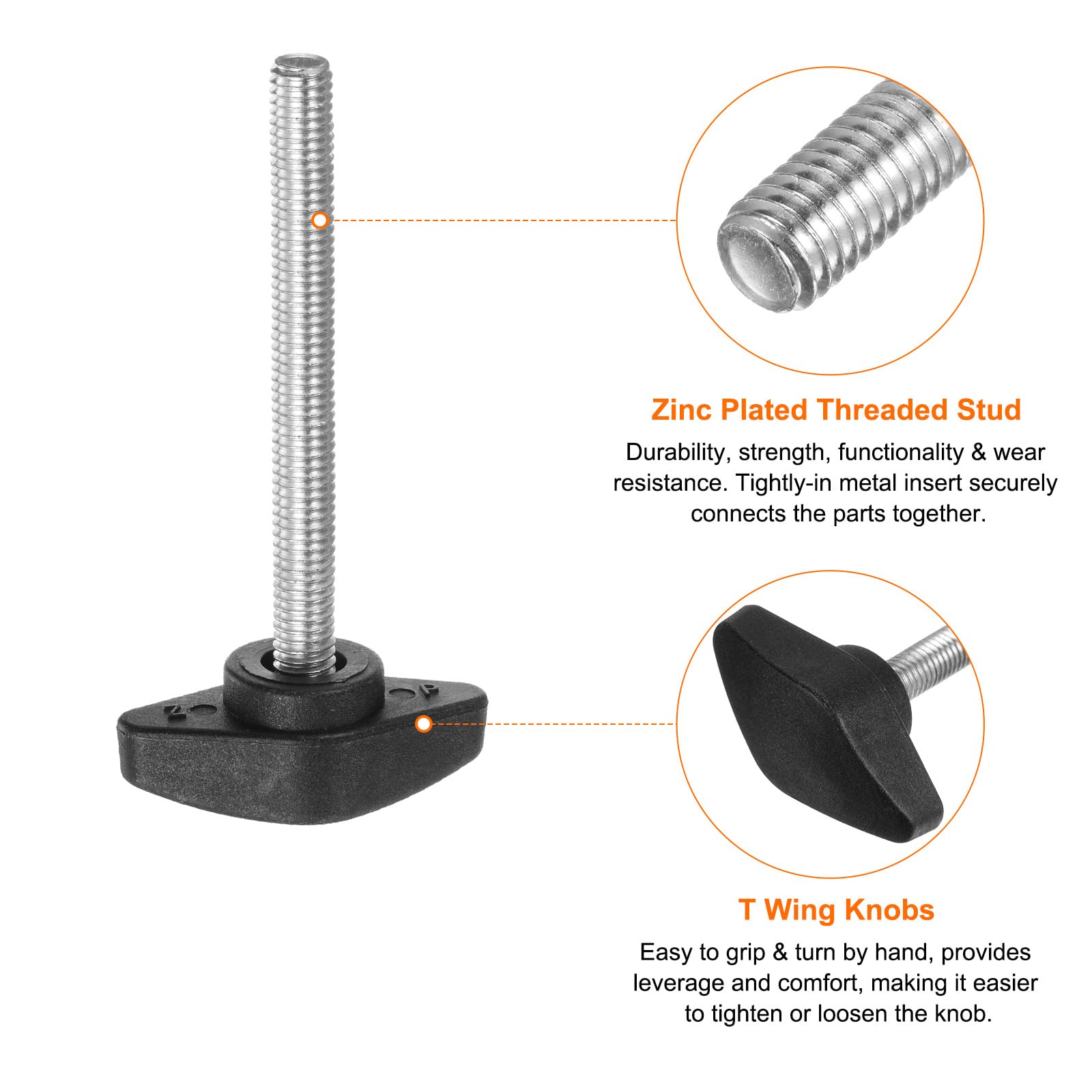• 2 Stück Rändelschrauben M6 X 60mm - Sterngriffmuttern Aus Metall Mit Kunststoffkopf