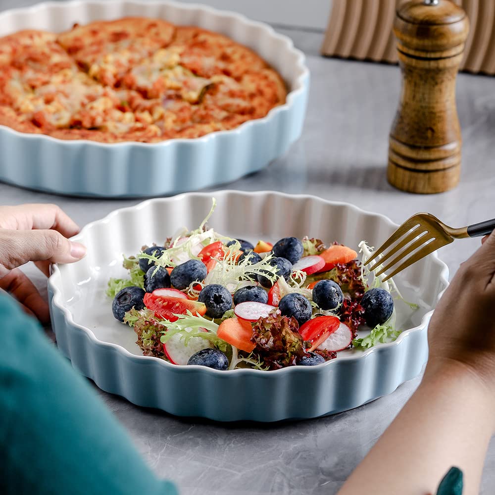 Back-Fans aufgepasst! Diese beiden Tarteformen aus Keramik sind ein Traum für jede Küche. Mit 28cm Durchmesser und 6cm Höhe hast du genug Platz für leckere Torten, Quiches und Kuchen. Die Antihaft-Beschichtung sorgt dafür, dass nichts anklebt - super einfach zu reinigen! Aus hochwertiger Keramik, die die Wärme gleichmäßig verteilt - so gelingt dir jedes Backwerk perfekt. Ungiftig, geruchlos und absolut sicher. Auch für Kühlschrank und Mikrowelle geeignet. Im Set sind 2 Formen - perfekt wenn du mehrere Torten backen willst oder eine verschenken möchtest. Mach deine Back-Kreationen noch professioneller mit diesen tollen Formen! Einfach befüllen, backen und genießen.