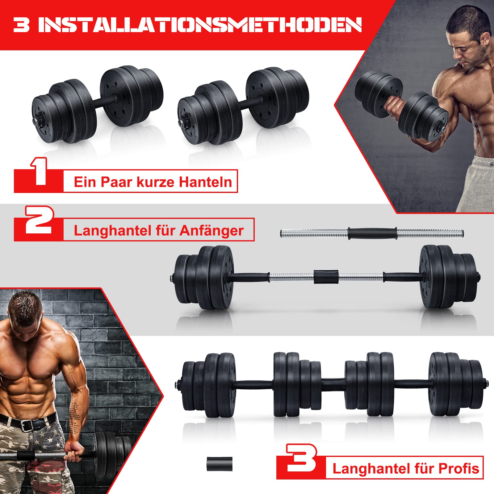 Okay, Sportskanone! Diese Hantelstangen sind genau das, was dein Homegym noch gebraucht hat. Im Pack sind 2 Stück, jeweils 35cm lang, mit richtig guten rutschfesten Griffen. Das beste Feature? Die Sternverschlüsse! Die halten die Gewichtsscheiben bombenfest an Ort und Stelle - da rutscht nix während du pumpst. Jede Stange hat sogar 4 Gewinderinge für extra Sicherheit. Die Griffe sind aus Gummi und liegen super in der Hand - selbst wenn du schwitzt. Damit kannst du echt viele verschiedene Übungen machen: Bizeps-Curls, Schulterdrücken, Kniebeugen mit Gewichten... Deiner Kreativität sind kaum Grenzen gesetzt. Die Kanten sind abgerundet, damit du dich nicht schneidest - Safety first! Egal ob du Anfänger oder Profi bist - mit diesen Stangen hast du die Flexibilität, dein Training genau so zu gestalten, wie du es brauchst. Einfach die passenden Scheiben drauf und los geht's mit dem Pumpen! Perfekt für jeden, der nicht immer ins Studio will oder kann.