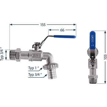Hebel mit blauem Kunststoff-Griff - liegt gut in der Hand, auch wenn nass. Mit Sicherungssystem - kannst du den Hahn arretieren, dass er nicht versehentlich aufgedreht wird. 90 Grad verstellbar - super easy zu bedienen.