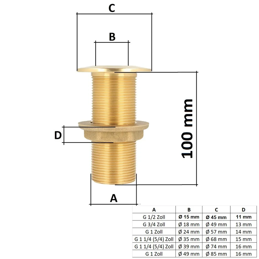 Gesamtlänge 100mm - passt für die meisten Tonnen. Mit zwei Silikondichtungen - doppelte Sicherheit gegen Leckagen. Außendurchmesser 20mm, Innendurchmesser 15mm.