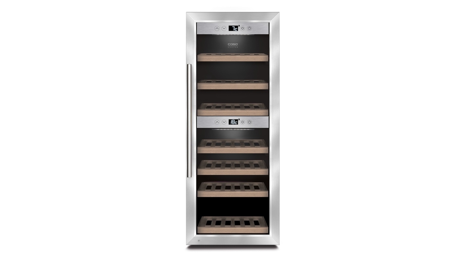 Endlich der perfekte Weinlagerschrank für deine Sammlung! Der Caso WineComfort bietet Platz für stolze 38 Flaschen und das bei einer Höhe von bis zu 31 cm. Das absolute Highlight: Die zwei separaten Temperaturzonen! So kannst du Weißwein bei kühlen 5-8°C und Rotwein bei idealen 16-18°C gleichzeitig lagern. Das edle 3-fach Isolierglas mit UV-Filter schützt deine edlen Tropfen vor schädlicher Strahlung und bewahrt die Aromen. Die Bedienung per Touch-Display ist super intuitiv und die weiße LED-Beleuchtung sieht nicht nur klasse aus, sondern lässt dich auch immer den perfekten Wein finden. Die sieben ausziehbaren Holzböden sorgen für Stabilität und die schwingungsreduzierten Füße garantieren, dass deine Weine in Ruhe reifen können. Perfekt für die Wohnung oder das Wohnzimmer - dieser Weinkühlschrank ist nicht nur funktional, sondern auch ein echter Hingucker! Energieeffizient und leise läuft er einfach vor sich hin, während deine Weine optimal gelagert werden.
